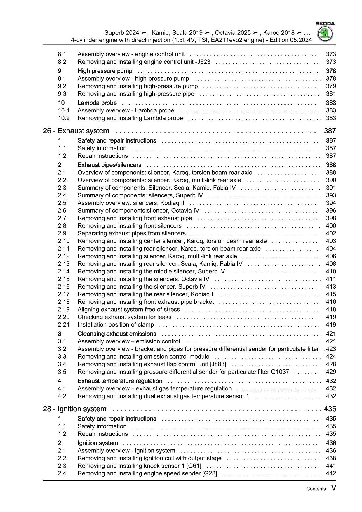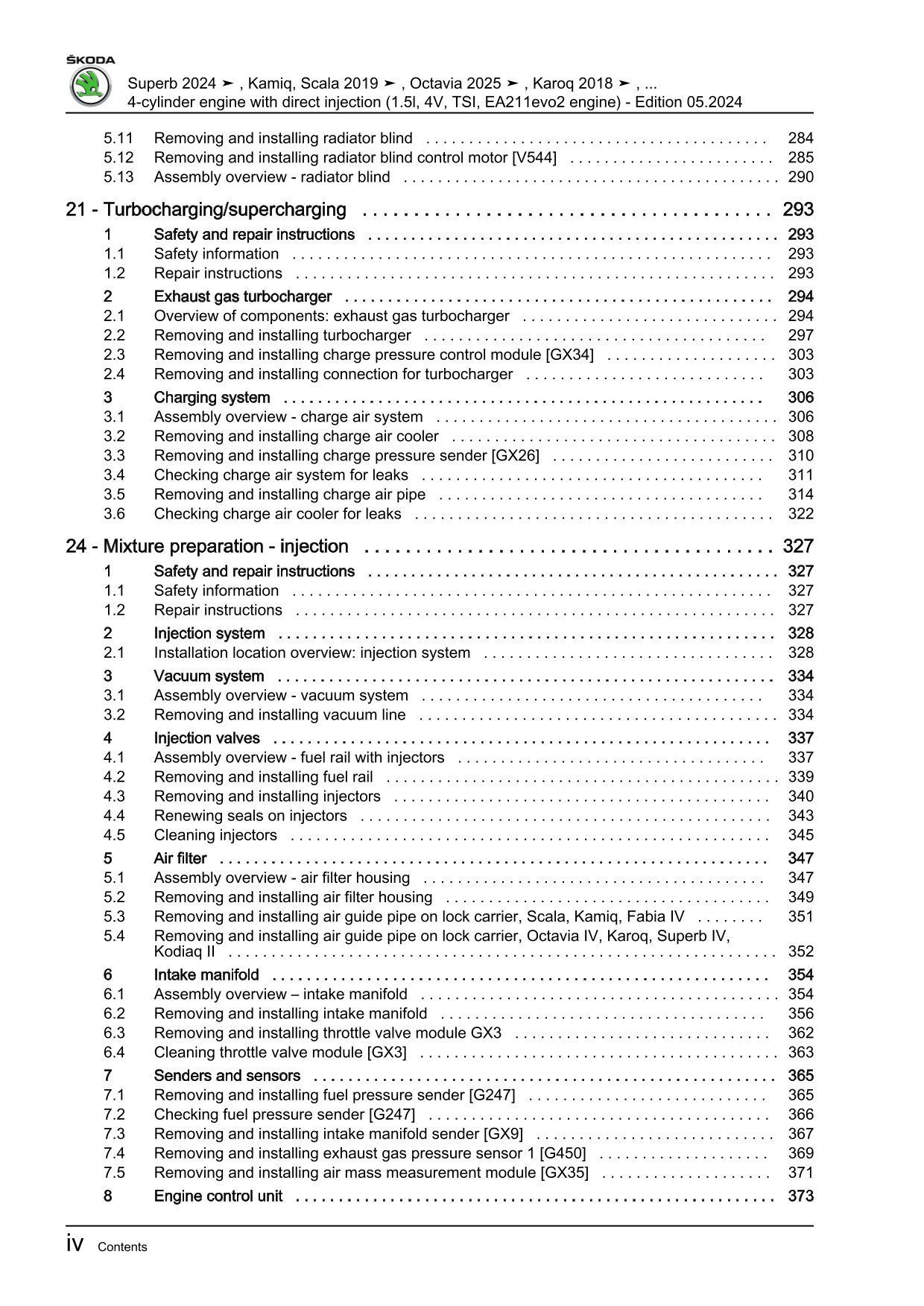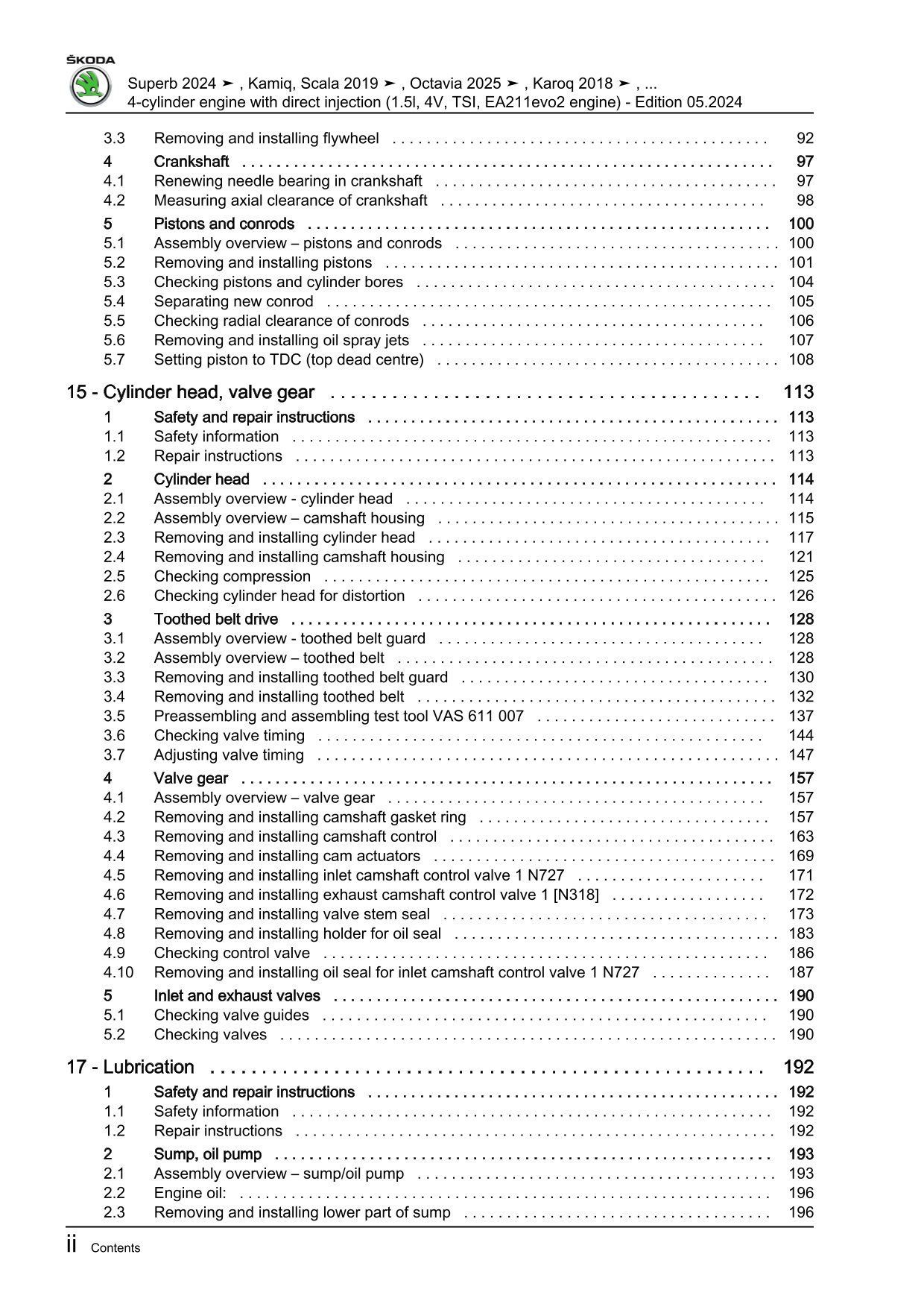 Skoda Scala type NW from 2019 petrol engines 1.5l 150 hp repair manual eBook