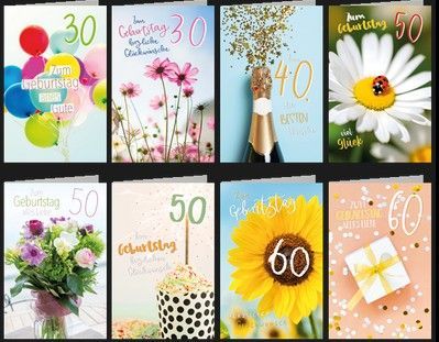 Geburtstagskarten Zahl 30 / 40 / 50 / 60 / 65 / 70 / 75 / 80/ 85 / 90 1 Stück Motivwahl nicht möglich
