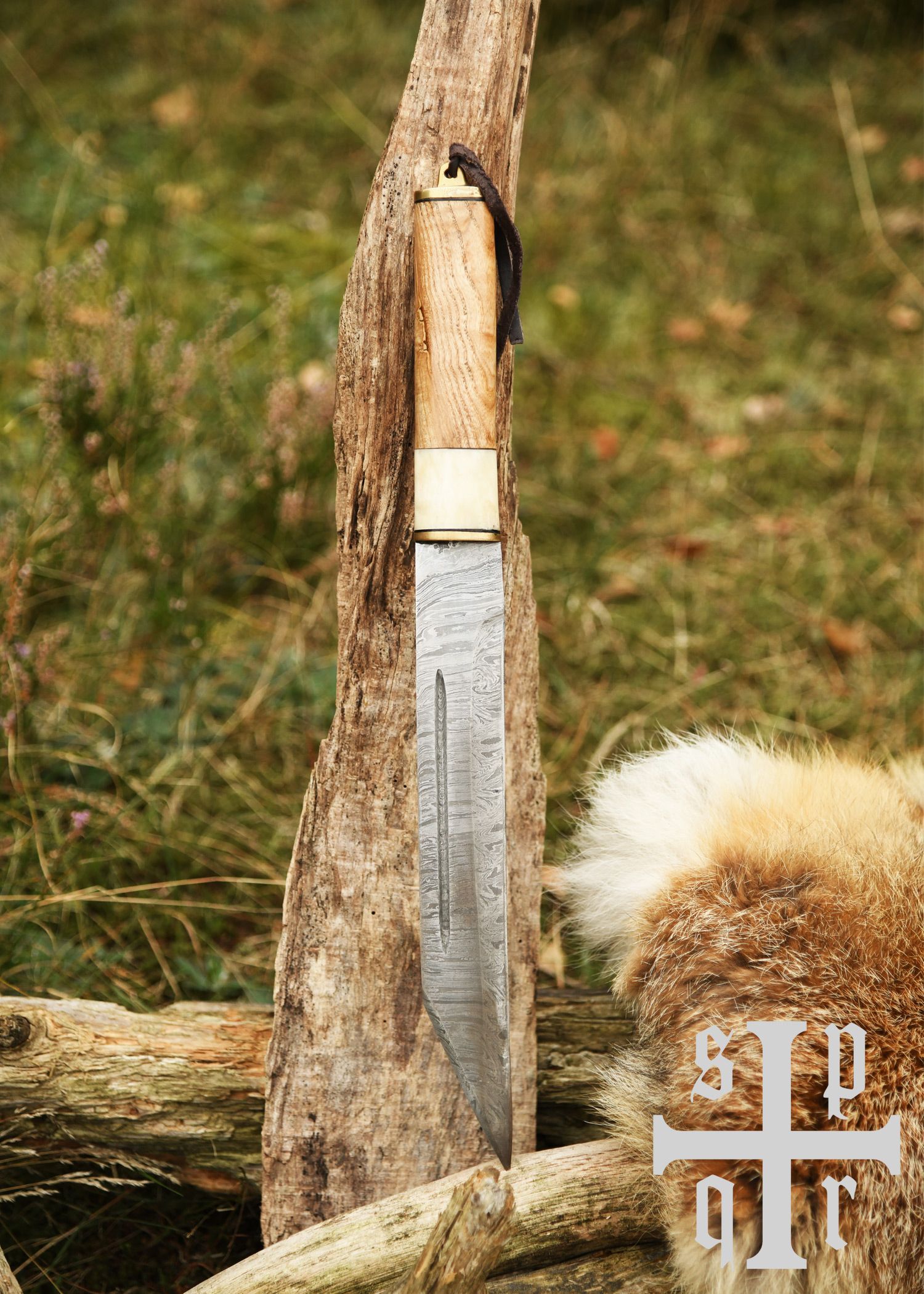 Skramasax, Sax aus Damaststahl mit Holz-/Knochengriff