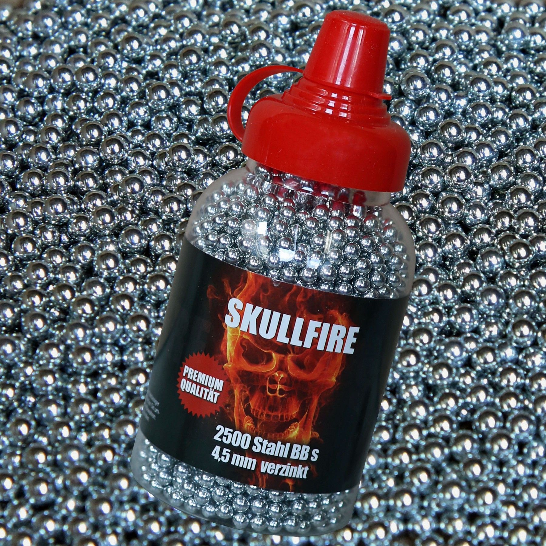 Skullfire Stahlrundkugeln verzinkt Kaliber 4,5mm 2500 BBs für Luftdruckwaffen
