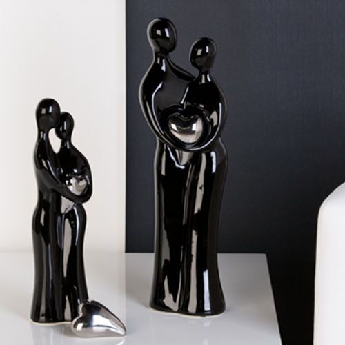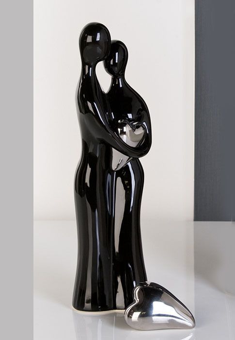 Skulptur PAAR MIT HERZ H39cm schwarz silber Liebespaar Hochzeit Liebe Keramik