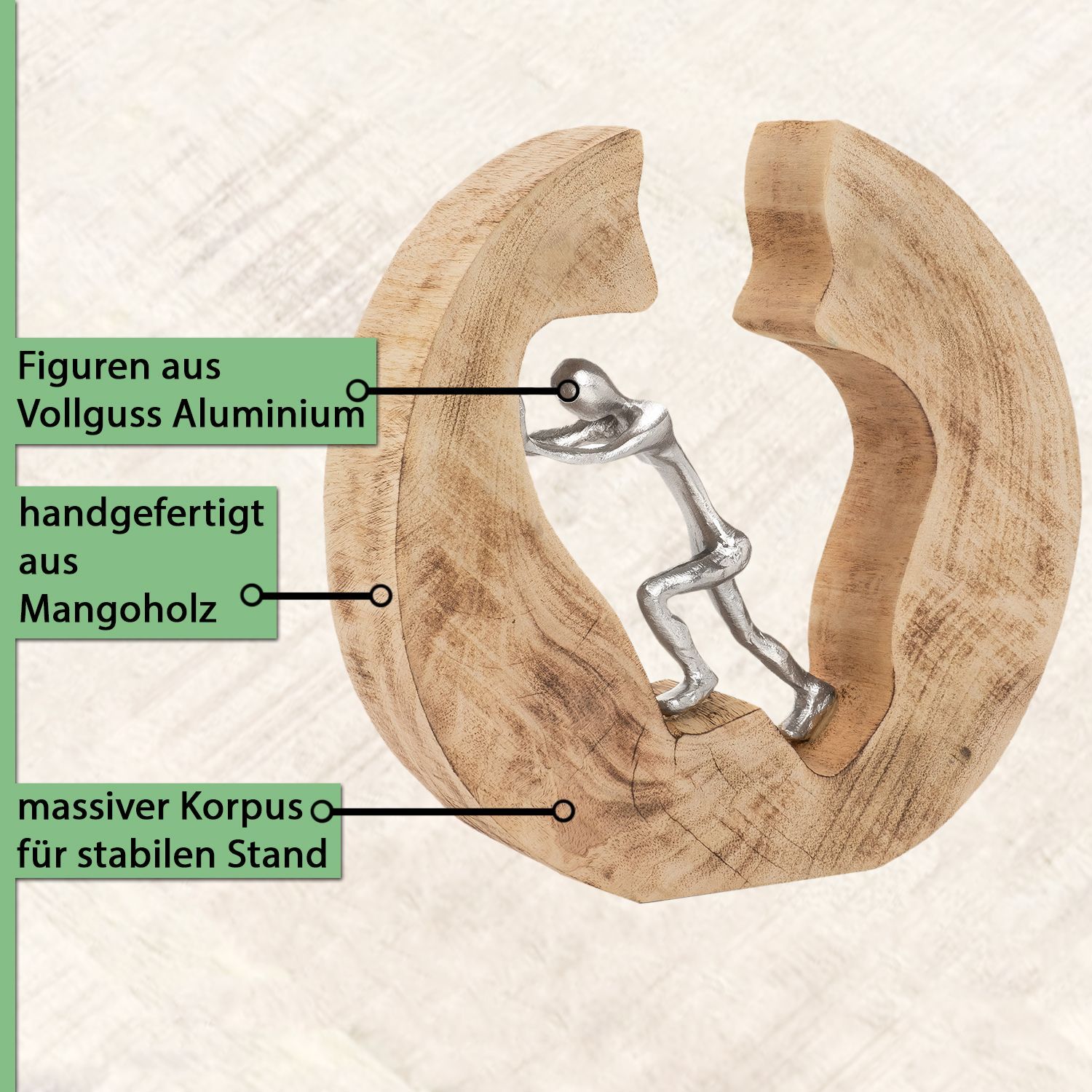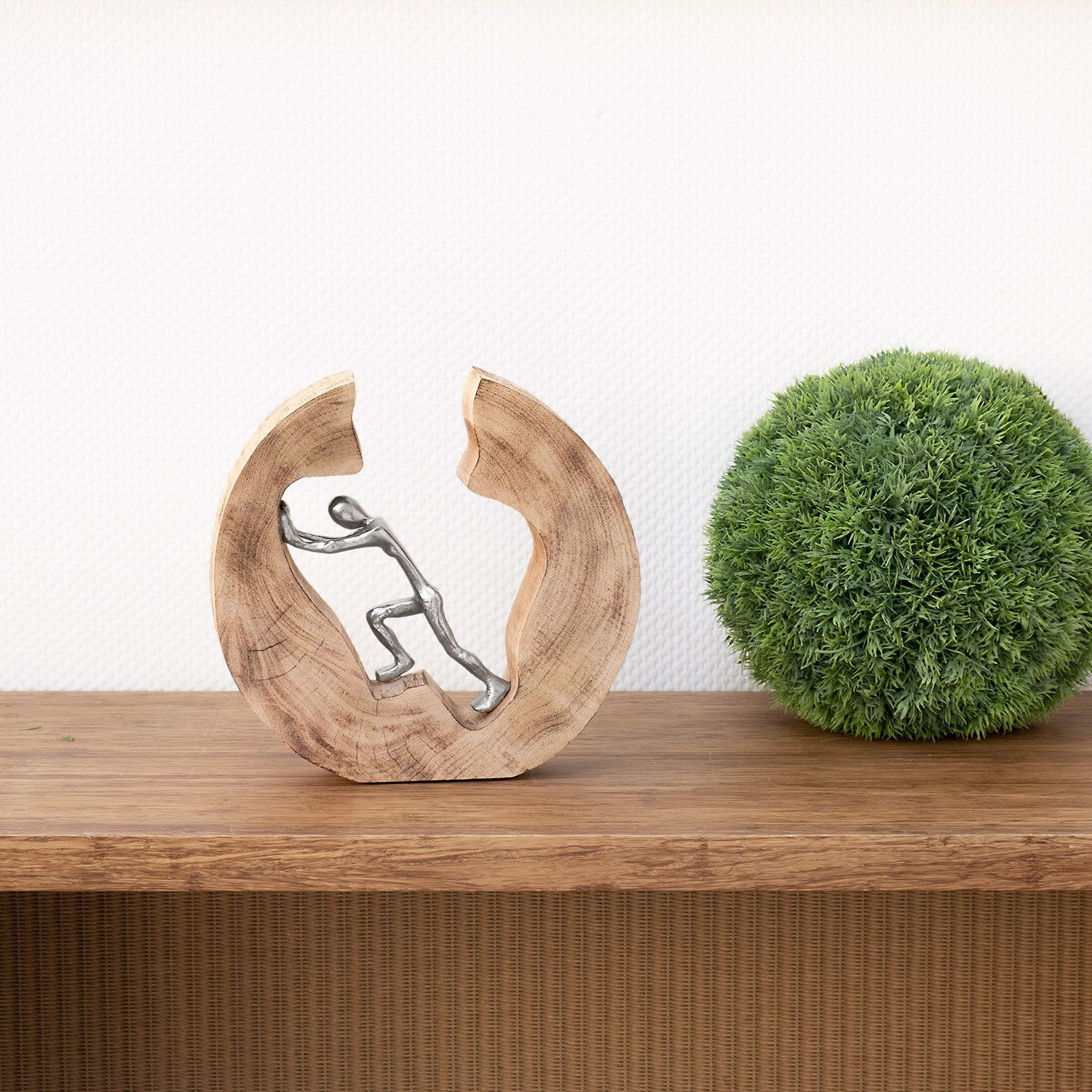 Skulptur Push and Work 29x28x6cm Holzdeko Modern Wohnzimmer