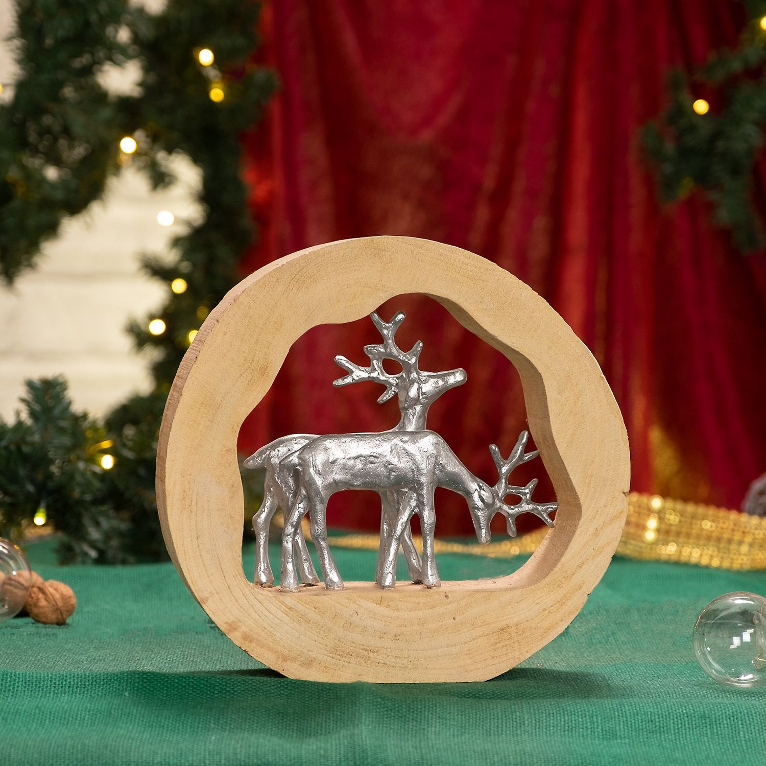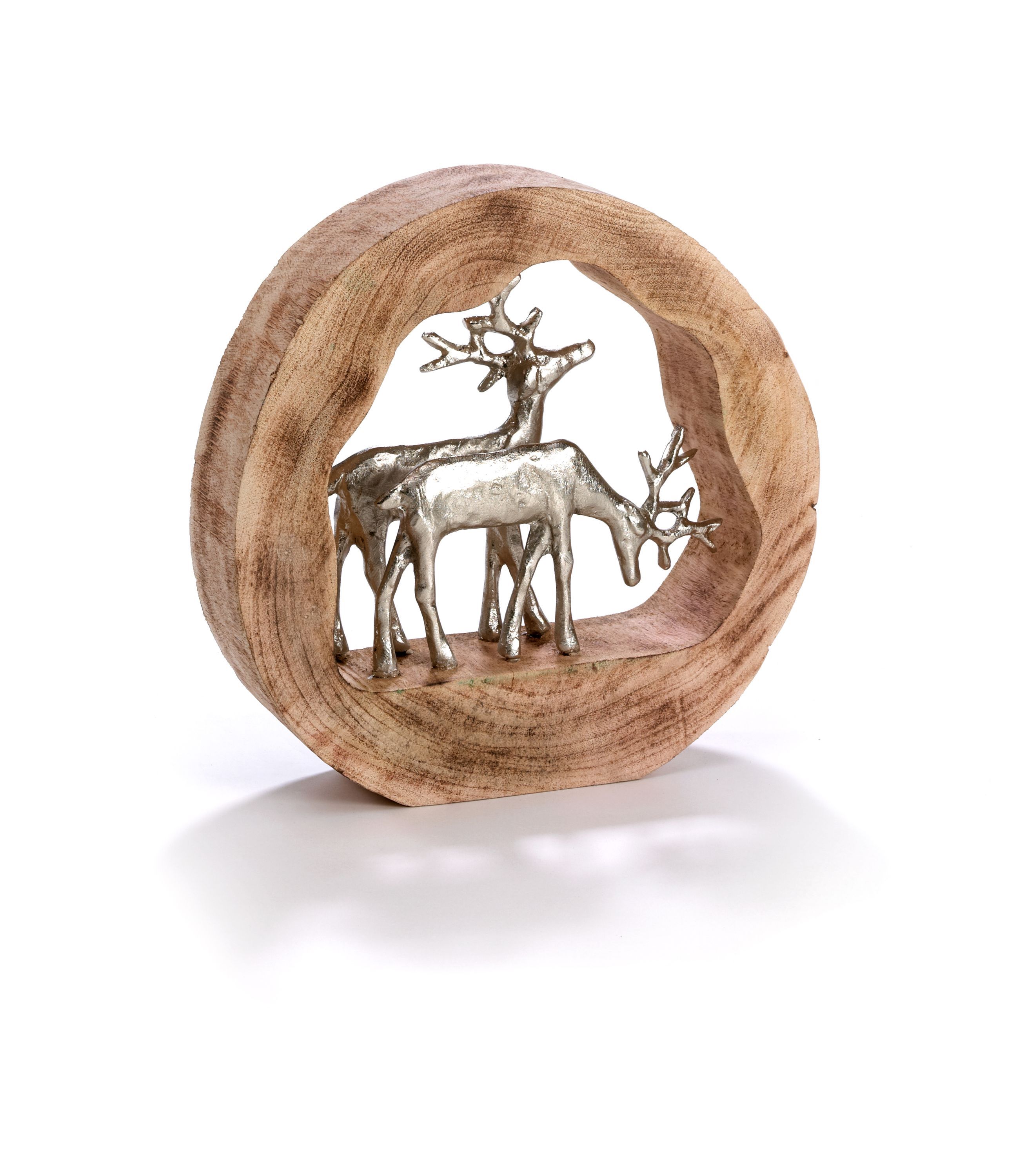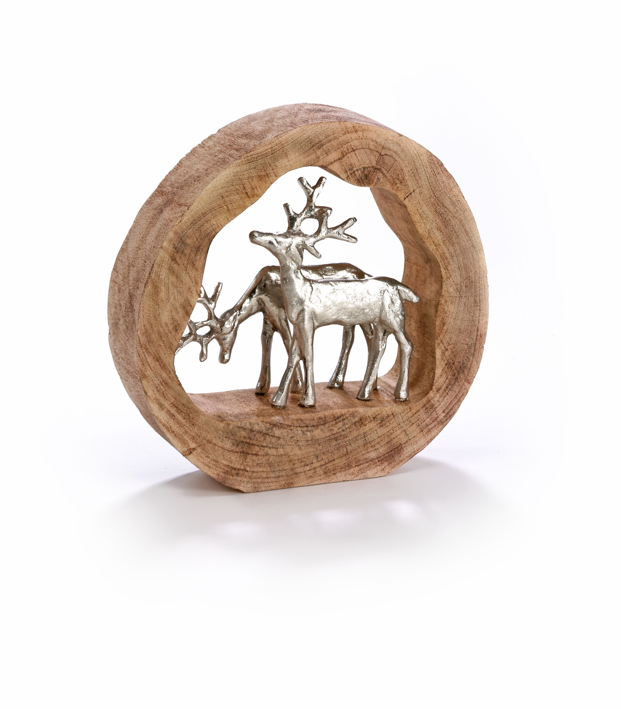 Skulptur Rentiere Paar 28x27x7 Holzdeko Modern Wohnzimmer Holzdeko Modern Wohnzimmer