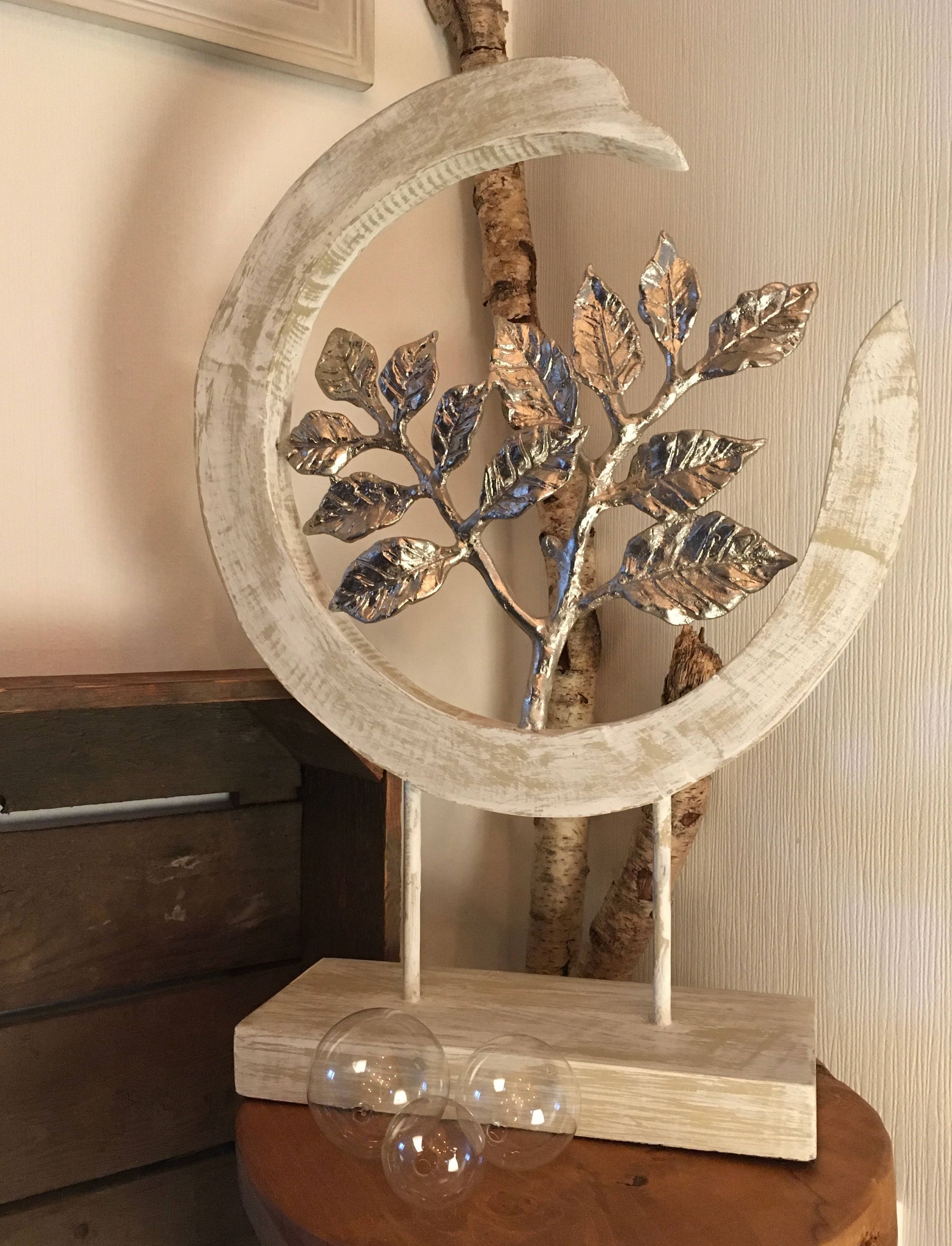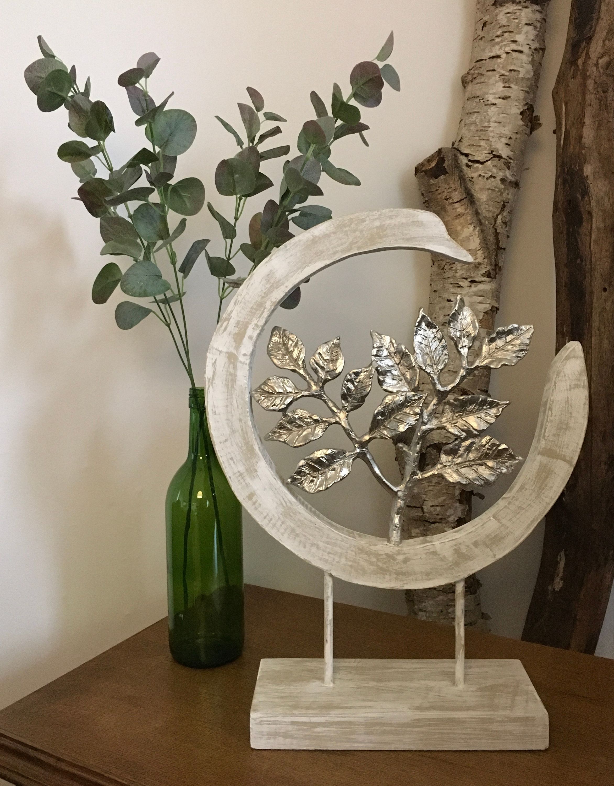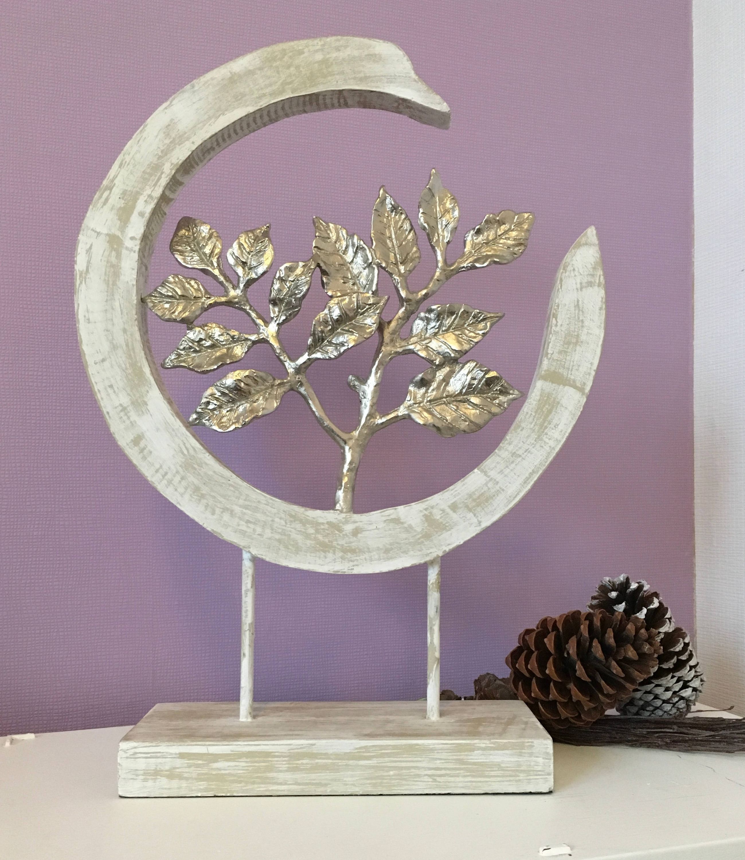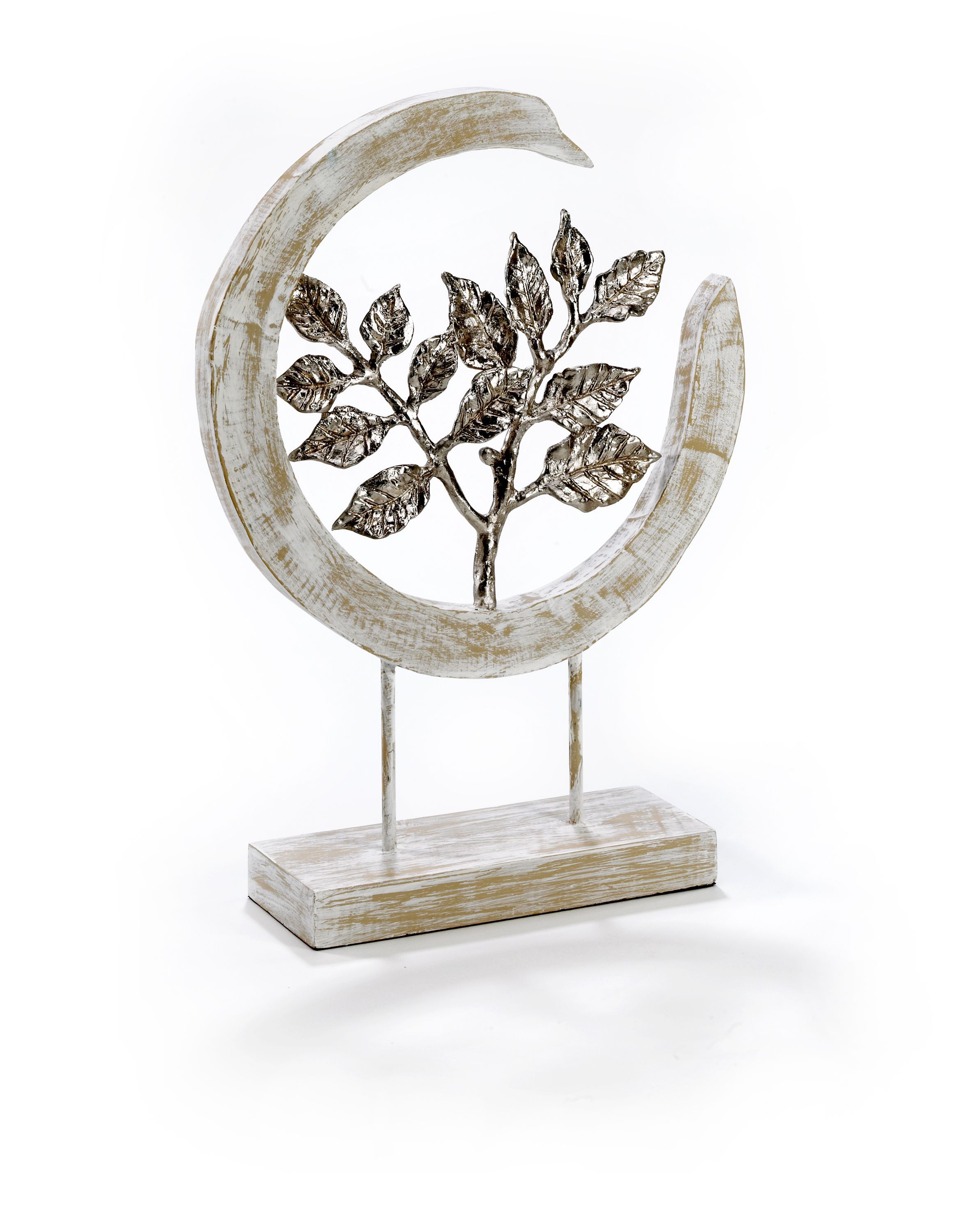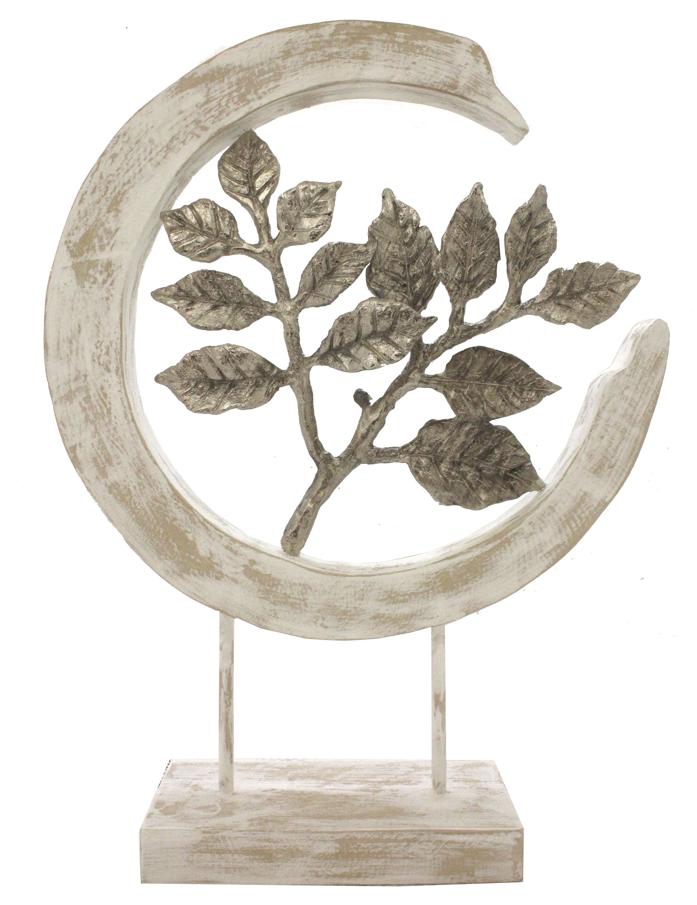 Skulptur Silber Blätter 10x34x47cm Holzdeko Modern Wohnzimmer