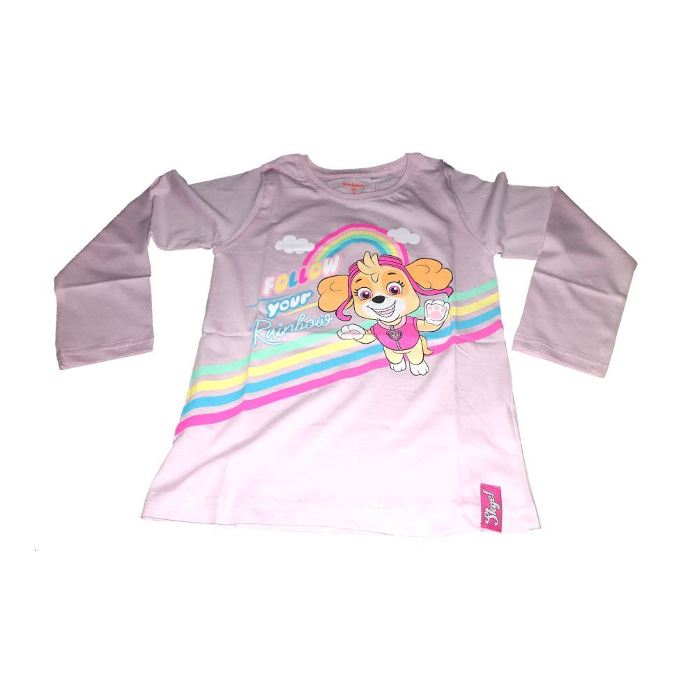 Skye PAW Patrol Langarm T-Shirt für Mädchen | 'Follow your Rainbow' | Rosa | Größe