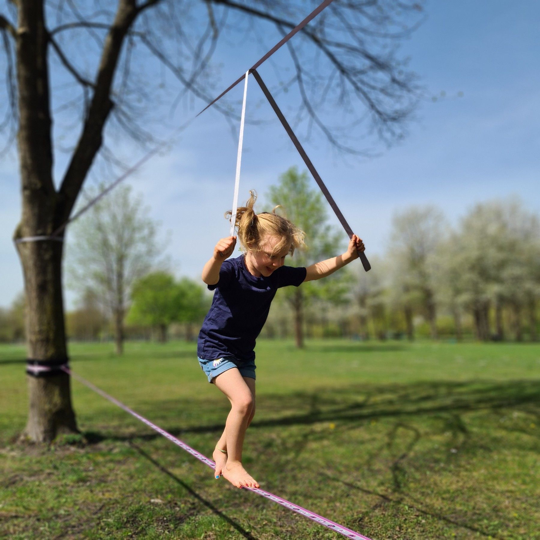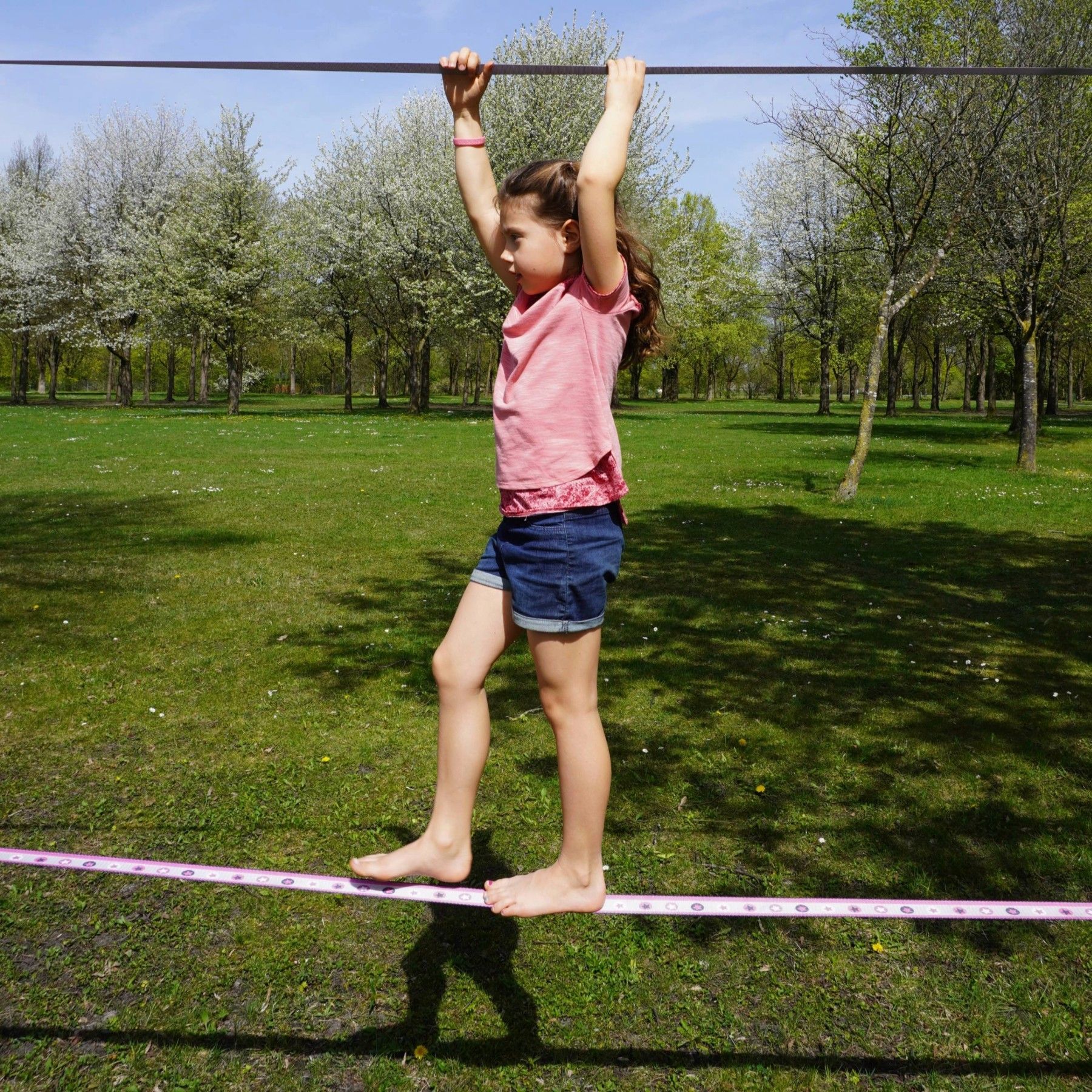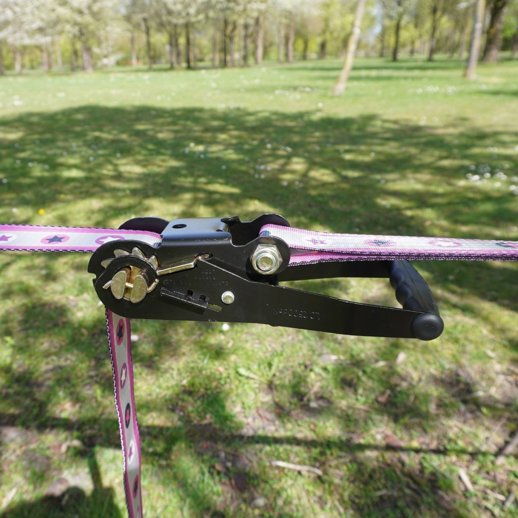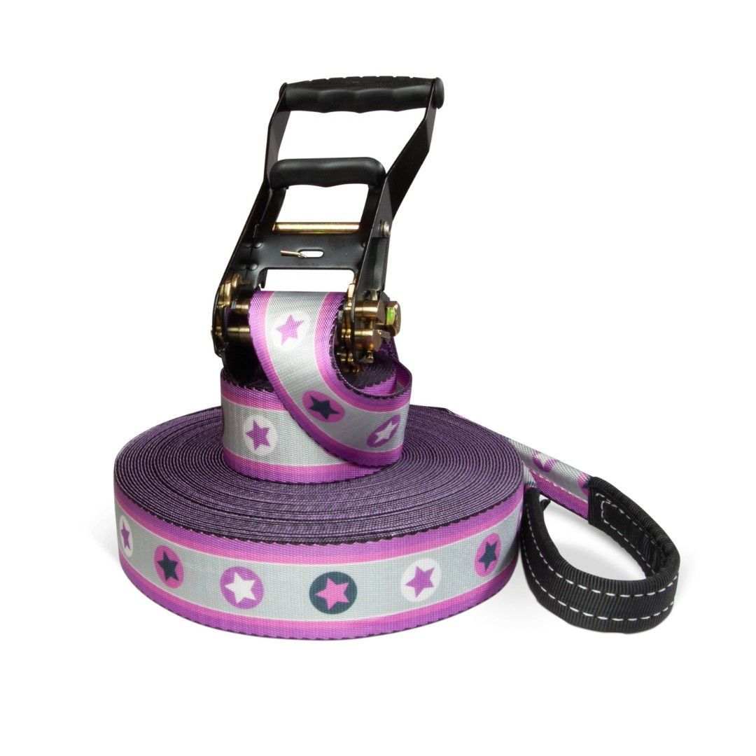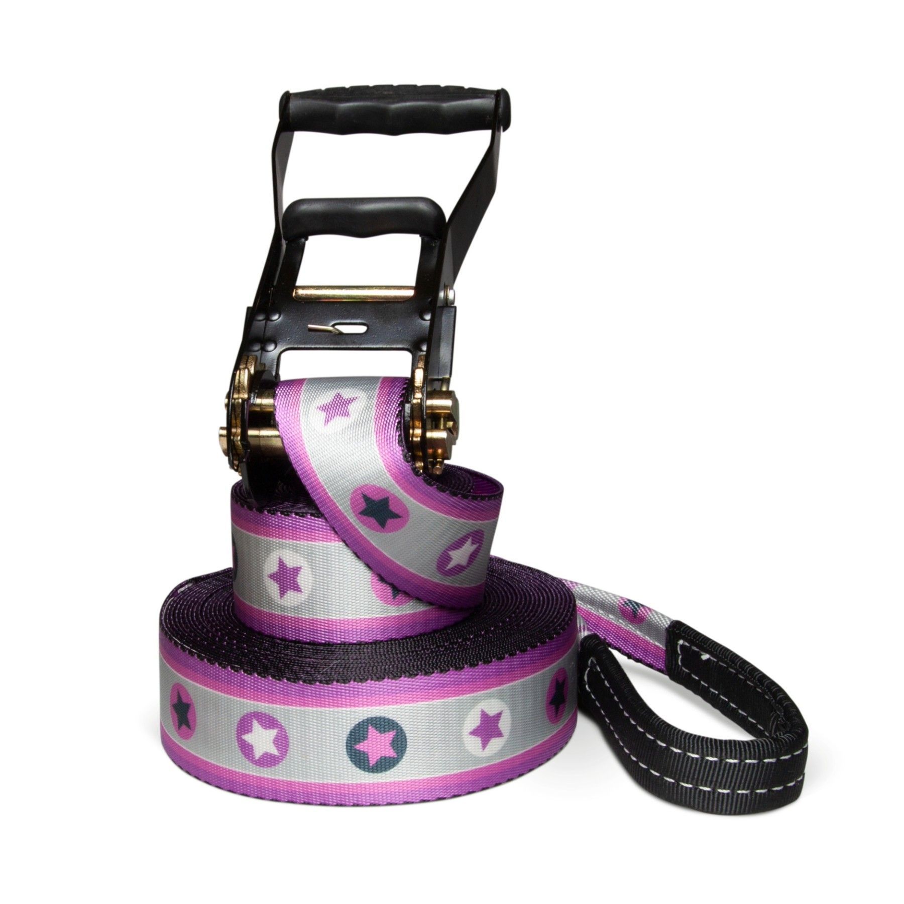 Slackline Set, Pink Stars, 15-25 Meter Länge, für Kinder und Anfänger inkl. Halteseil