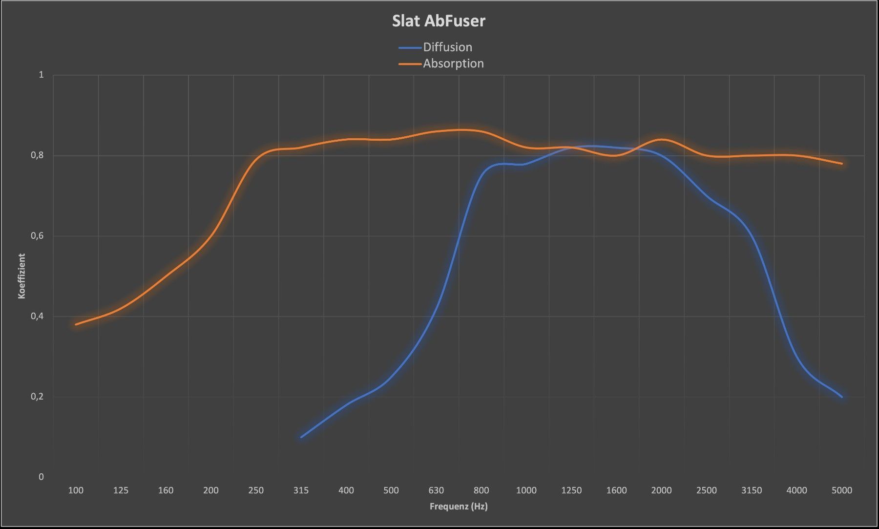 Der Slat Abfuser ist ein Hybrid-Akustikpaneel, eine einzigartige Kombination aus Absorber und Diffusionsplatte, die hinsichtlich der Schallverteilung optimiert ist. Dieses Panel verfügt über hervorragende Schallabsorptionseigenschaften und sorgt gleichzeitig für zusätzliche Streuung in den mittleren