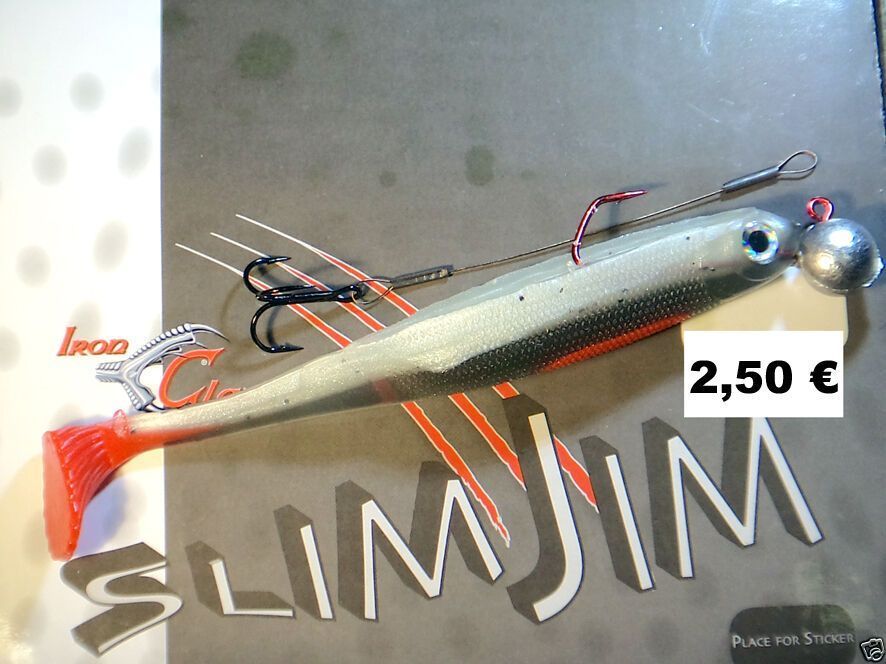 Hallo, wir bieten euch hier den Slim Jim Gummifisch von Sänger Iron Claw in 13 cm incl VMC-Jigkopf 3 0 in 14g incl. Stinger Angsthaken von PilkMaxx komplett montiert. Farbe Rückenschwimmer - siehe Bild Damit seid ihr für jede Situation am Wasser bestens ausgestattet und gleich einsatzbereit. Zander,