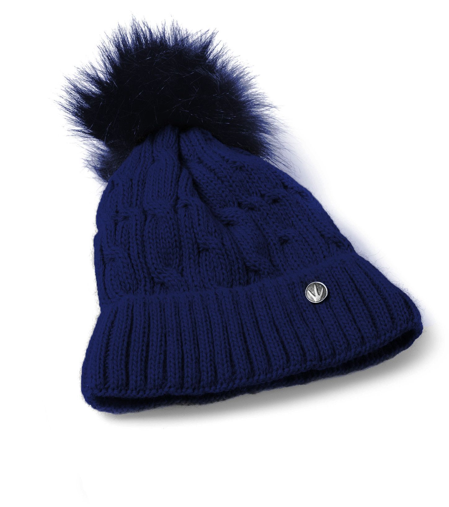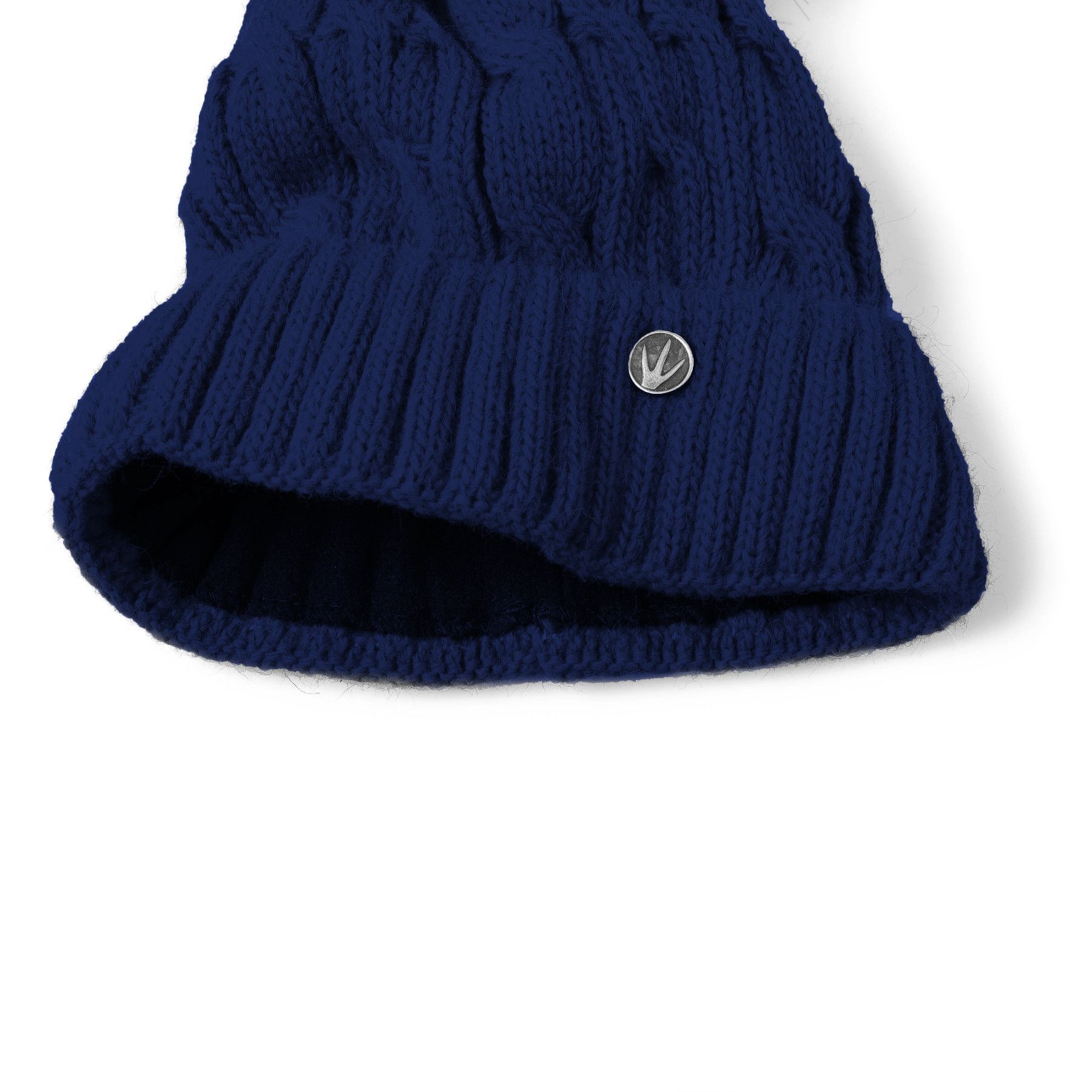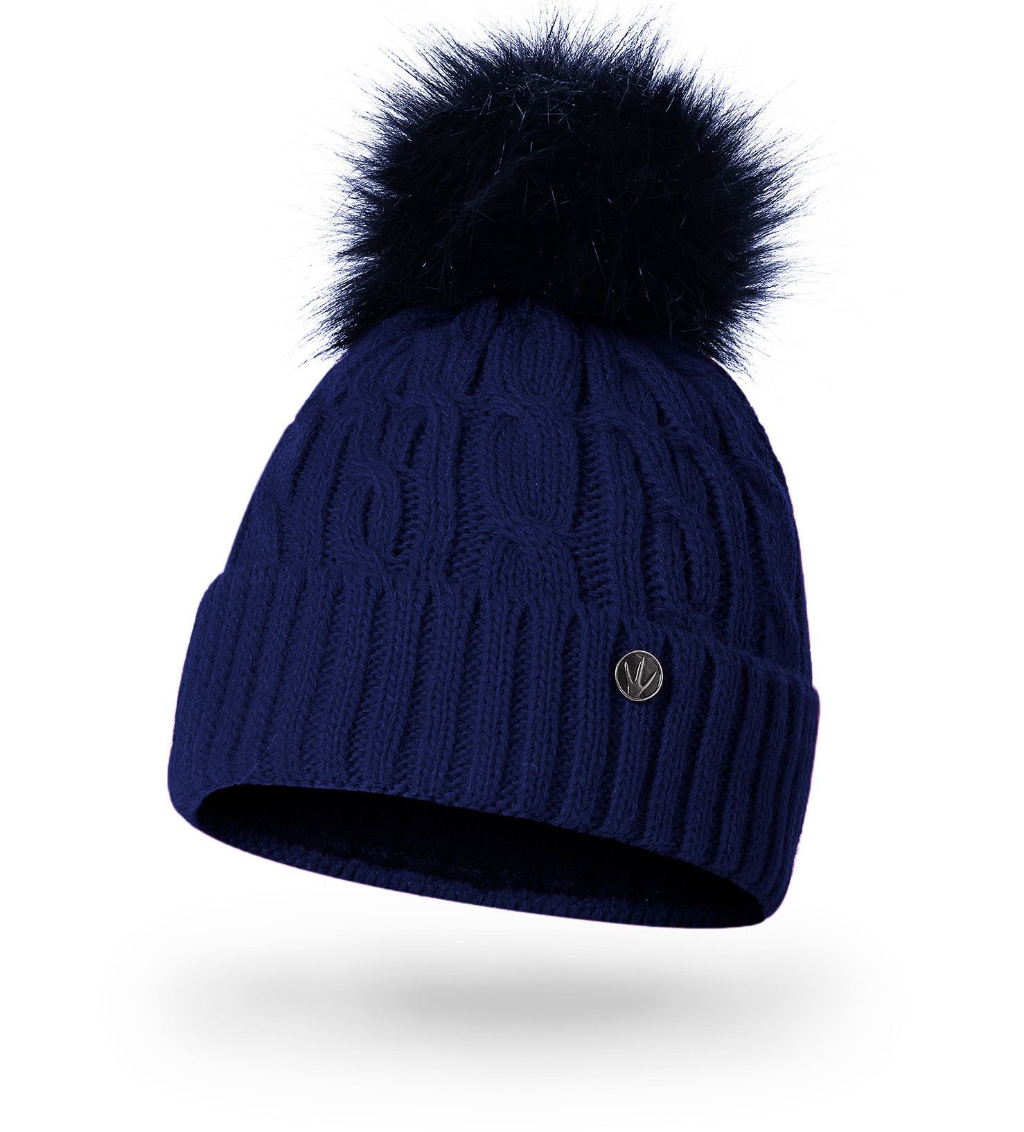 Slouch Beanie Damen Damenmütze warme Strickmütze Bommel Dunkelblau gefüttert