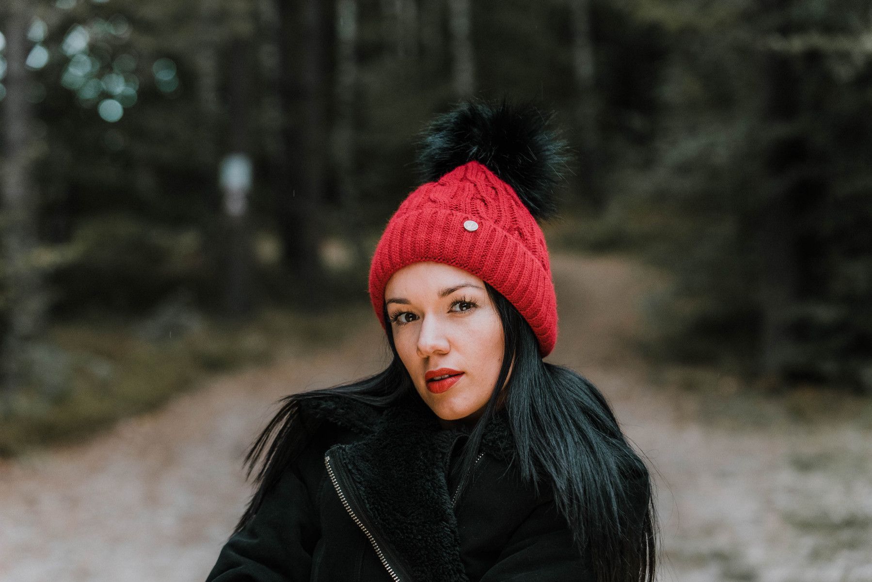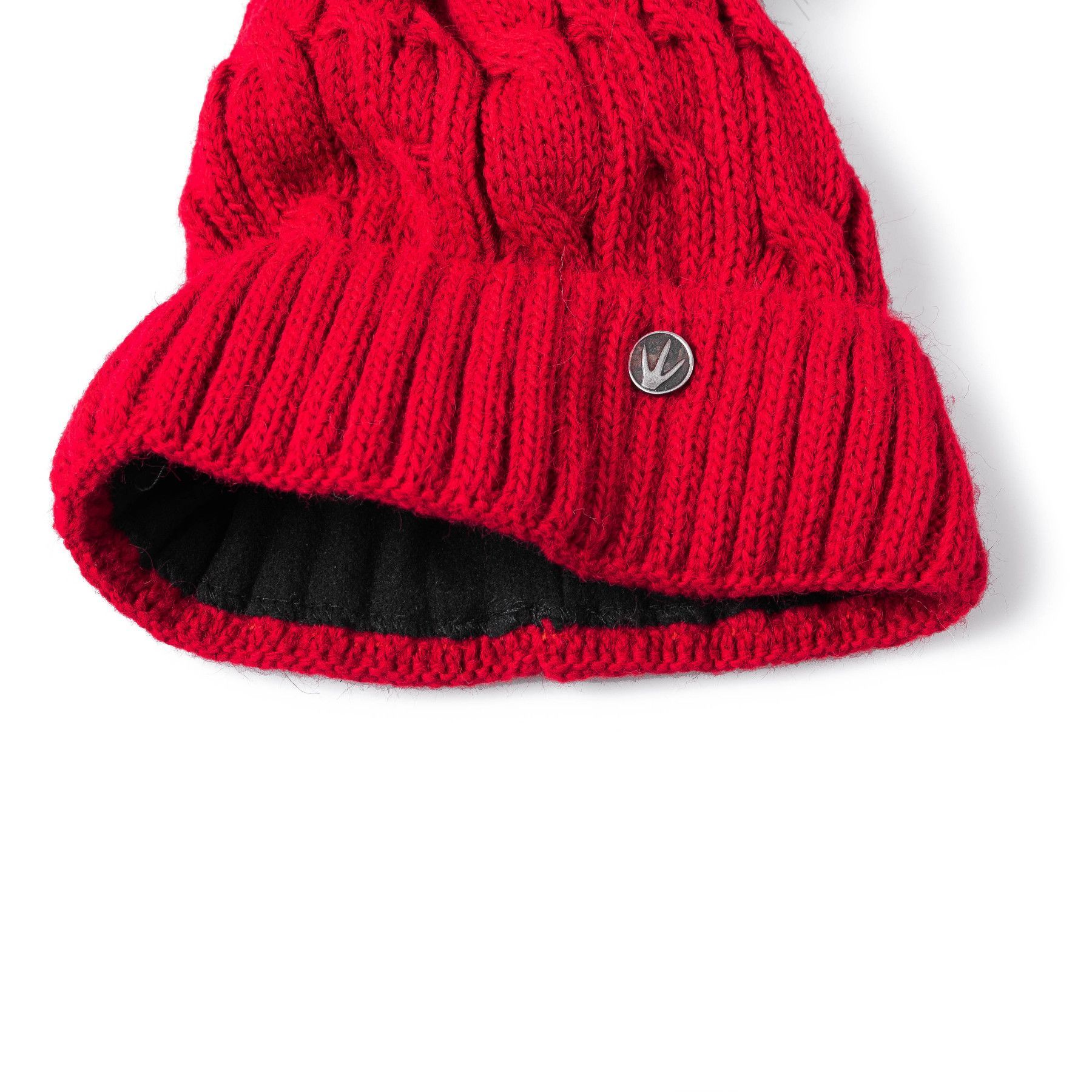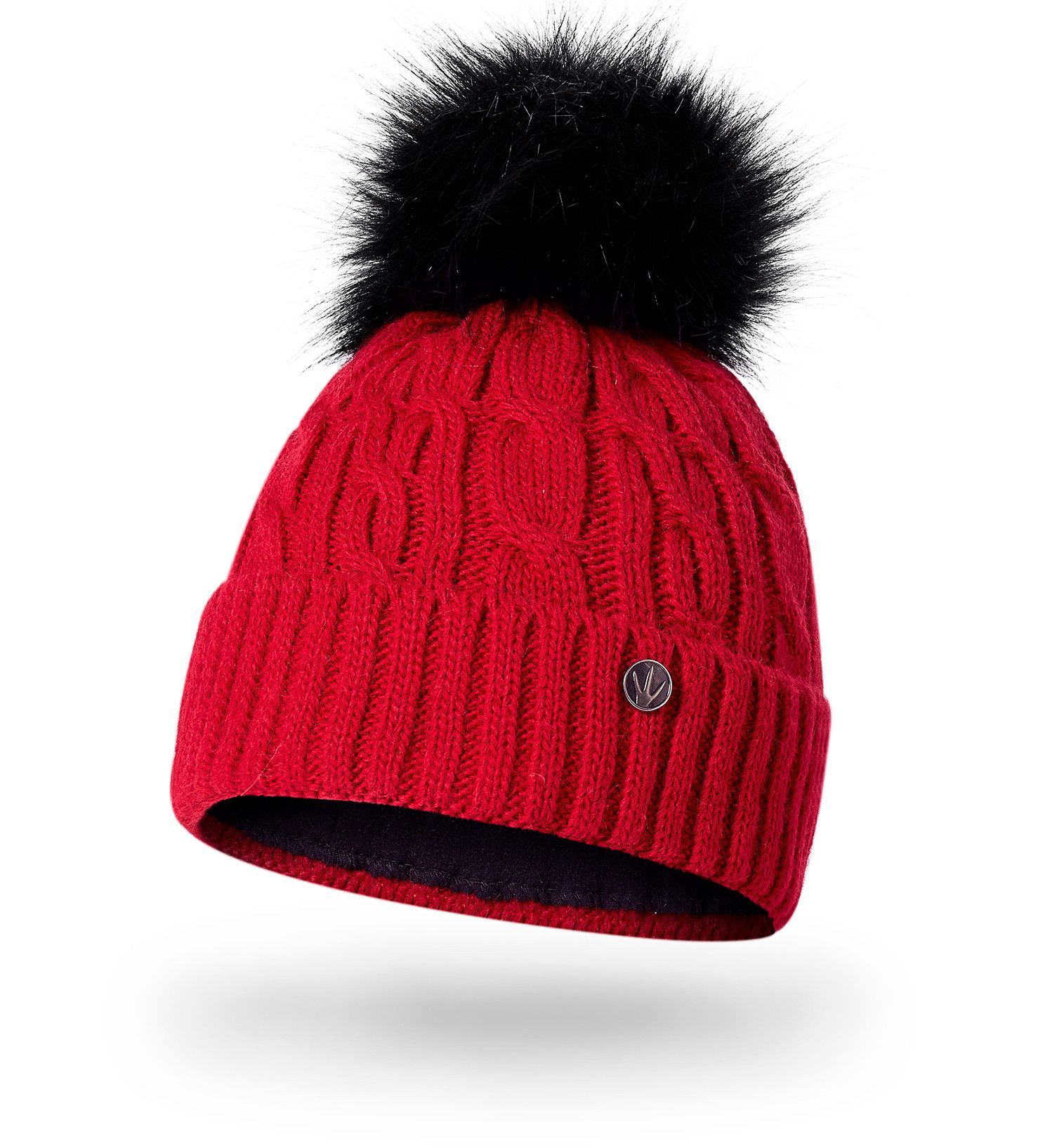 Slouch Beanie Damen Damenmütze warme Strickmütze Bommel Schwarz gefüttert