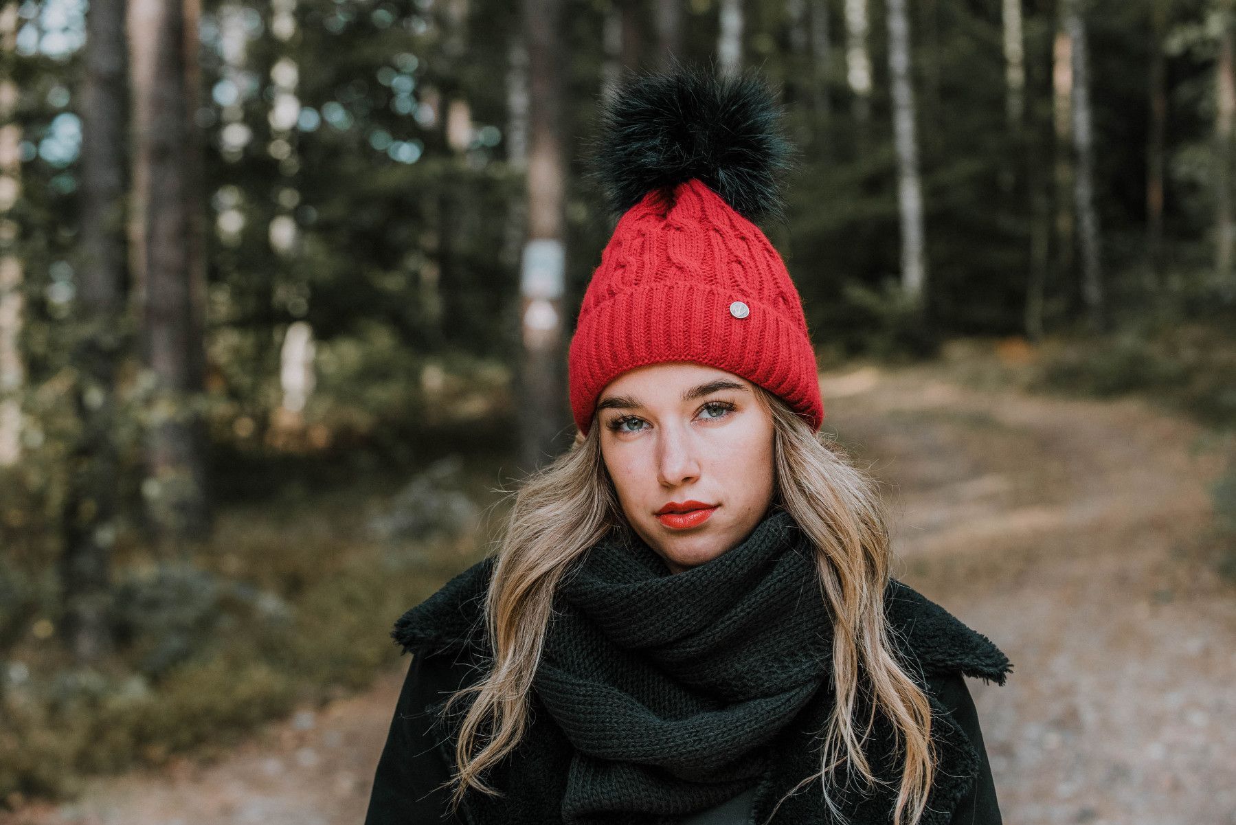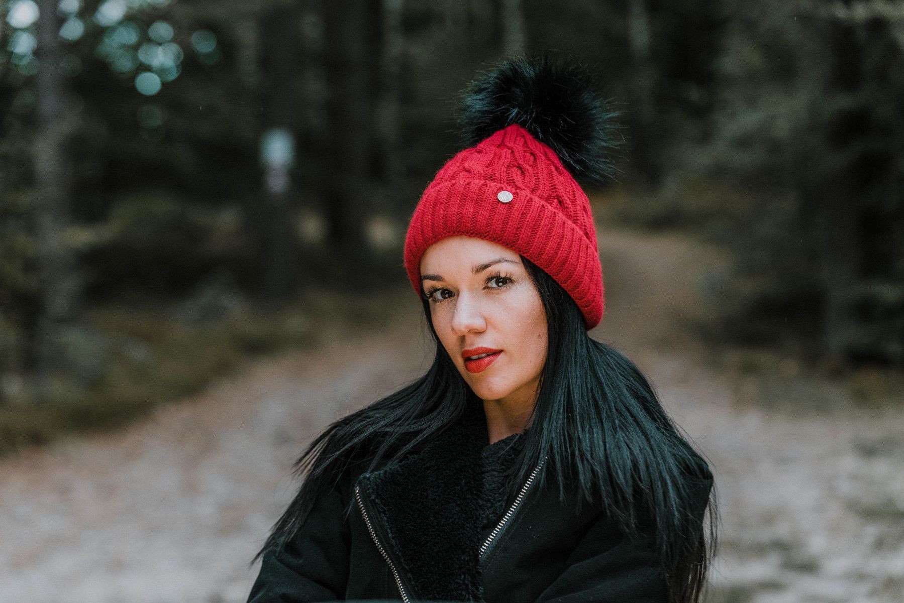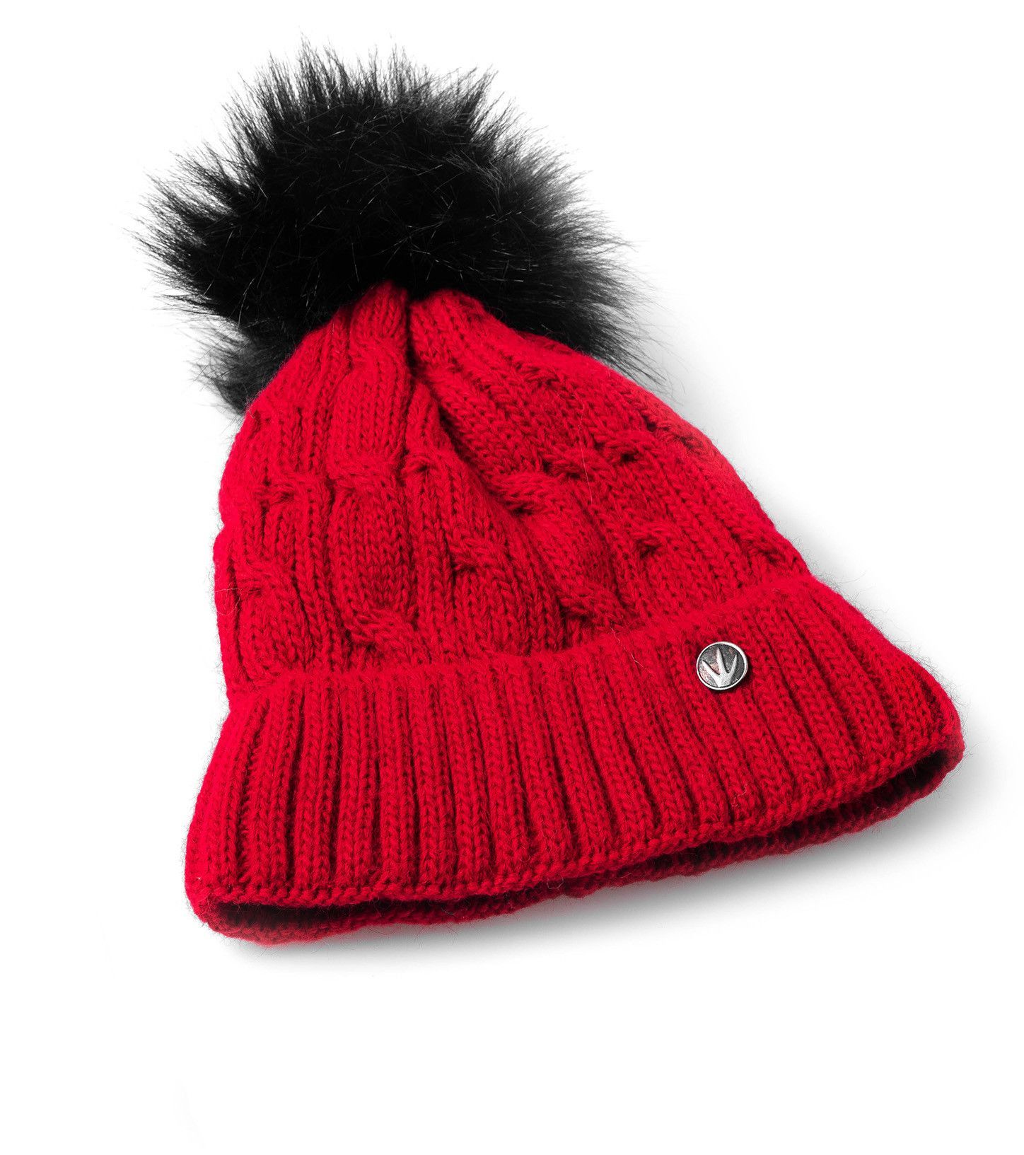 Slouch Beanie Damen Damenmütze warme Strickmütze Bommel Schwarz gefüttert