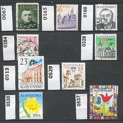 Slowakei Mi. Nr. 166 + 513 + 529 + 530 + 535 + 537 + 599 + 538 o <