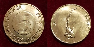 14347(1) 5 Tolarjev (Slowenien / Steinbock) 2000 in UNC ... * * * Berlin-coins * * *