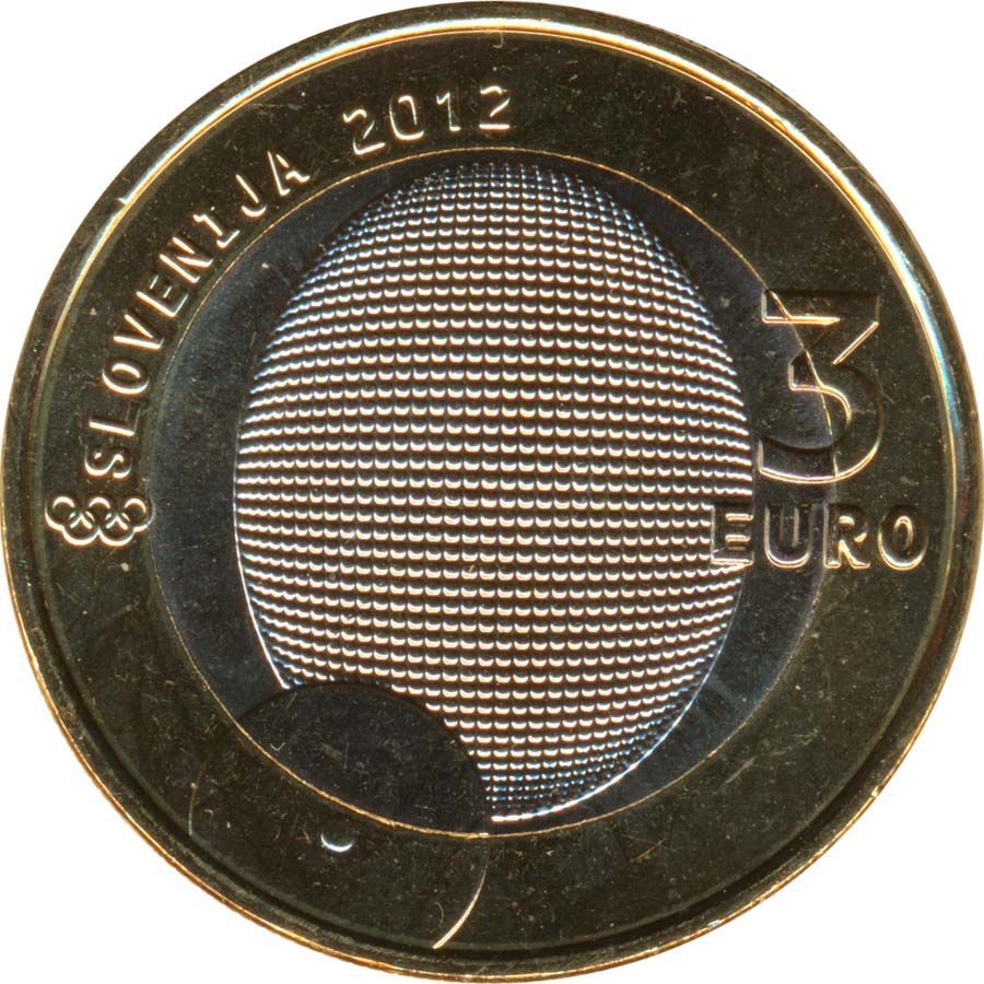 Slowenien 3 Euro 2012 100 Jahre Goldmedaille Rudolf Cvetko Bimetall*