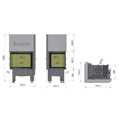 Smart 2PXTh Eck-Kamineinsatz Rechts 7kW Hebetür