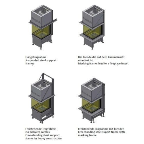 Ohne Tragrahmen, Mit Blendrahmen, Mit hängendem Tragrahmen (Ketten), Mit freistehenden Tragrahmen, Mit Tragrahmen + Blendrahmen