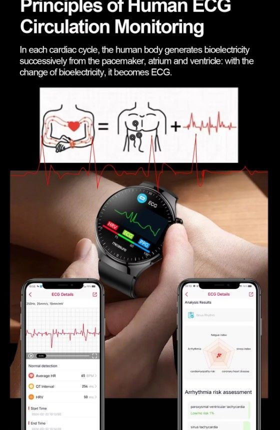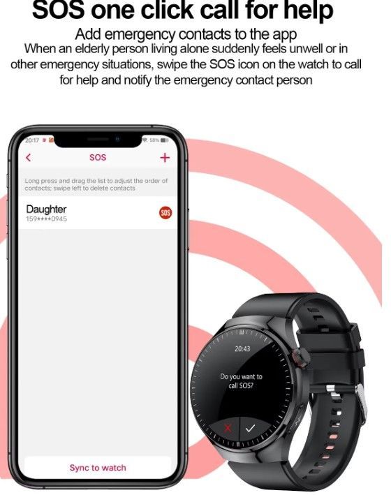 Smart Watch Männer Frauen BT Anruf 450mAh SOS Notfall Herzfrequenz EKG PPG Körpe
