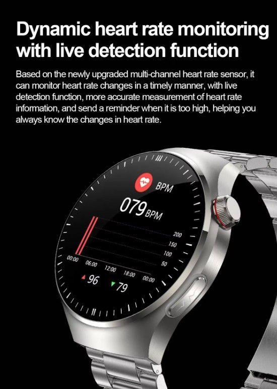 Smartwatch mit Edelstahlarmband – Multifunktionales Fitness- und Gesundheitsgerät Diese moderne Smartwatch kombiniert stilvolles Design mit leistungsstarker Technologie. Das robuste Edelstahlgehäuse und das verstellbare Metallarmband verleihen ihr ein hochwertiges, elegantes Aussehen – ideal für All