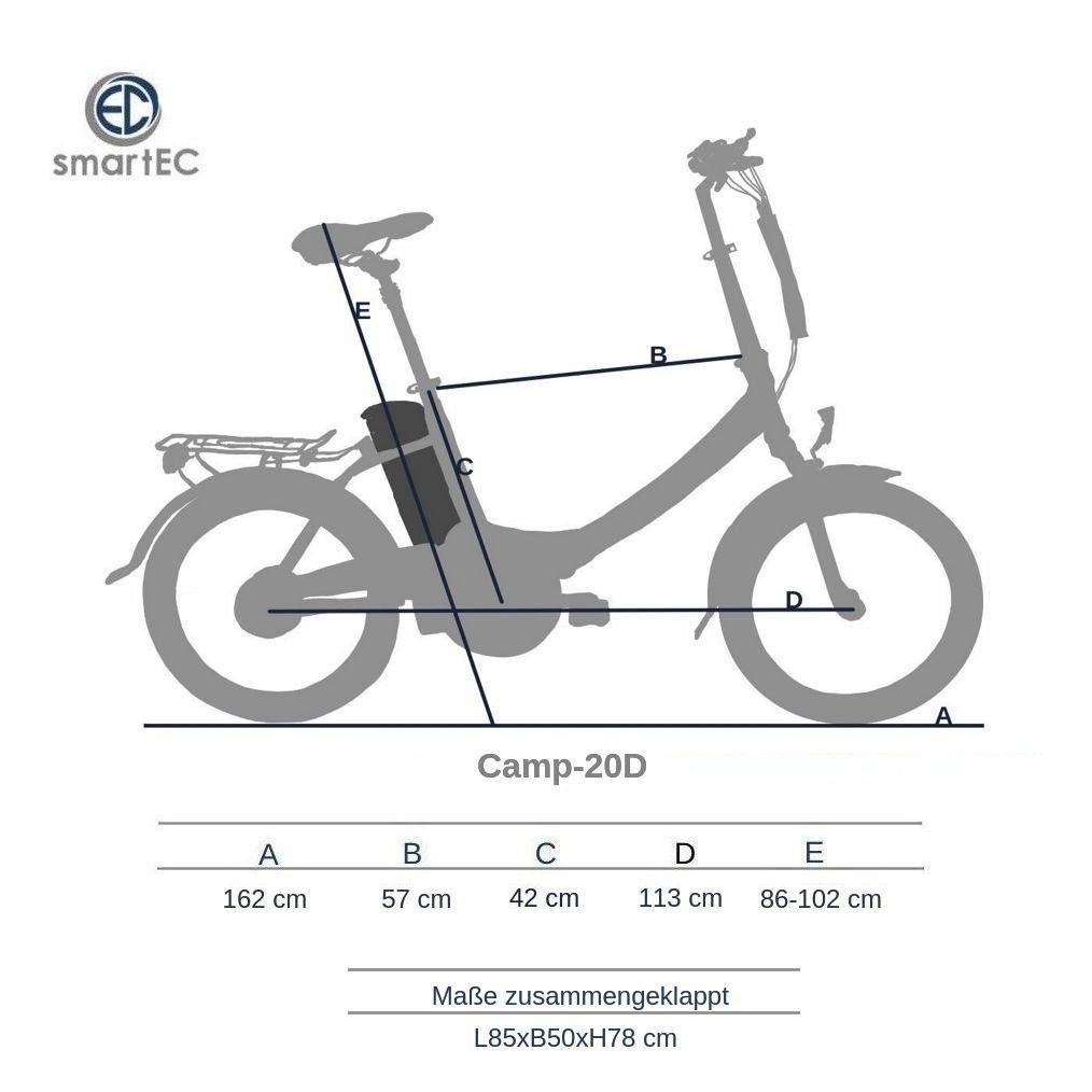 smartEC E-Klapprad Camp-20D Falt E-Bike 20 Zoll (Weiß)