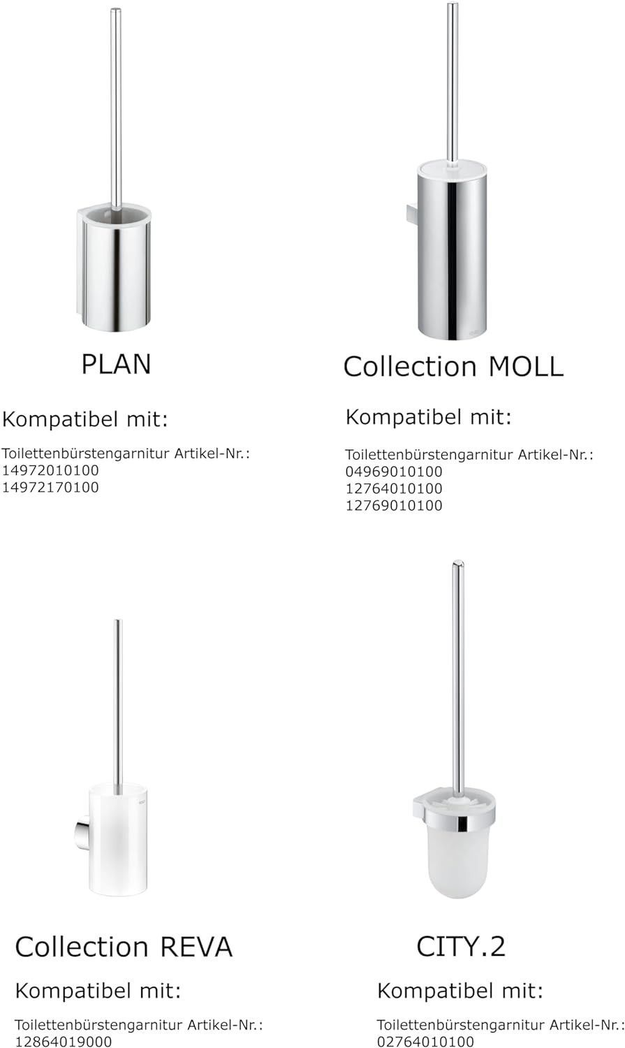 Ersatzbürstenköpfe kompatibel mit KEUCO Serien PLAN, MOLL, CITY.2 und REVA. Einfacher Austausch dank Bajonettverschluss – aufstecken und durch Drehen fixieren. Set enthält 3 Original KEUCO Ersatzbürstenköpfe in Weiß, ideal für verchromte Stiele. Bürstenkopfdurchmesser: 6,7 cm, Gesamtlänge: 12,7 cm. Hergestellt in der EU aus hochwertigem Kunststoff für Langlebigkeit und Nachhaltigkeit.
