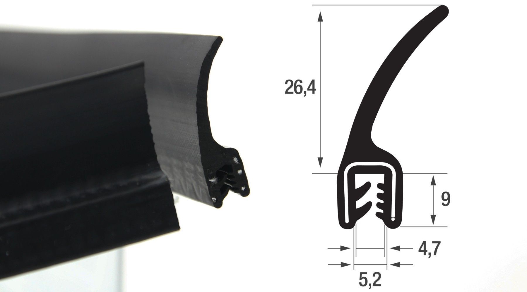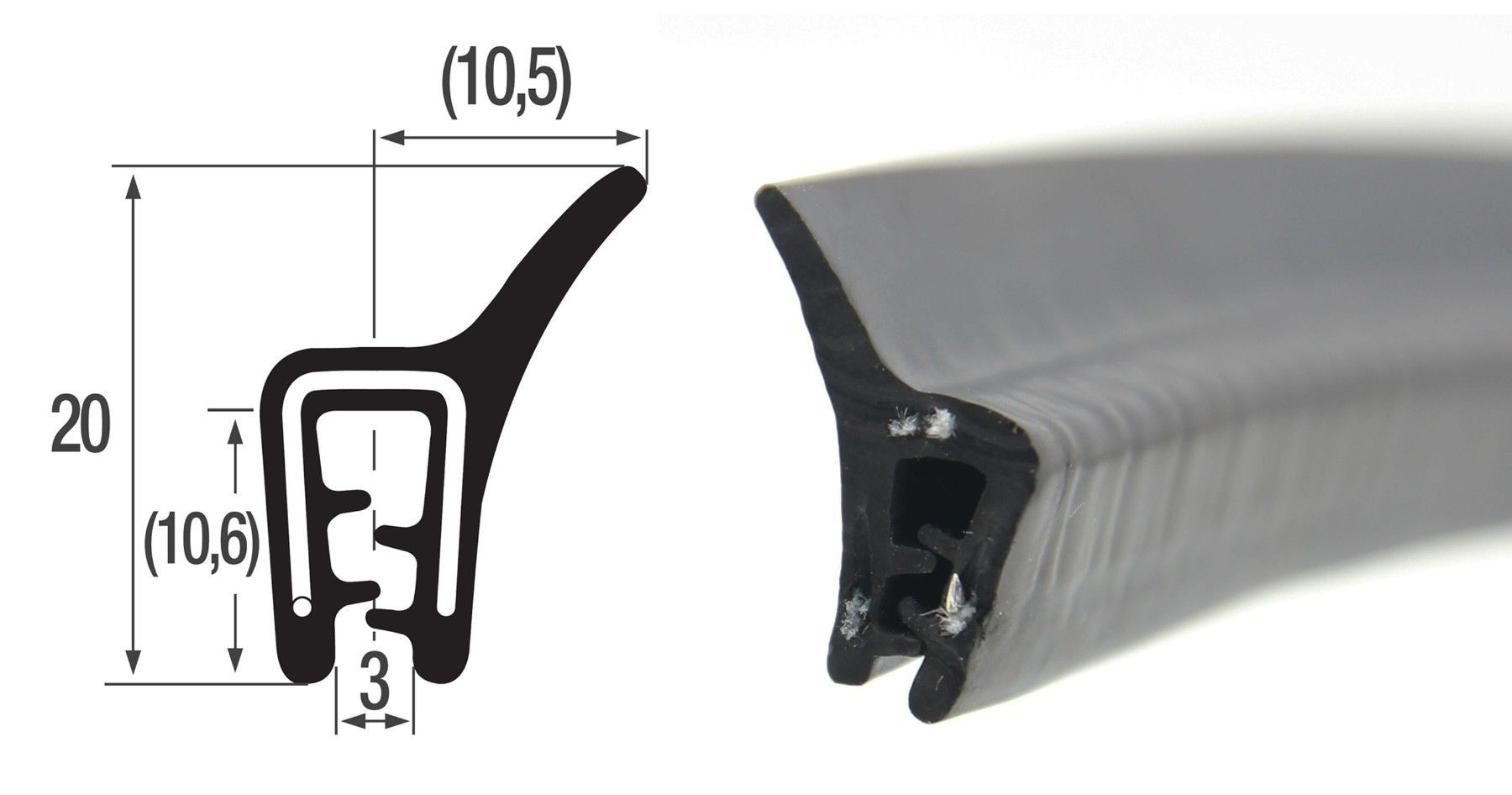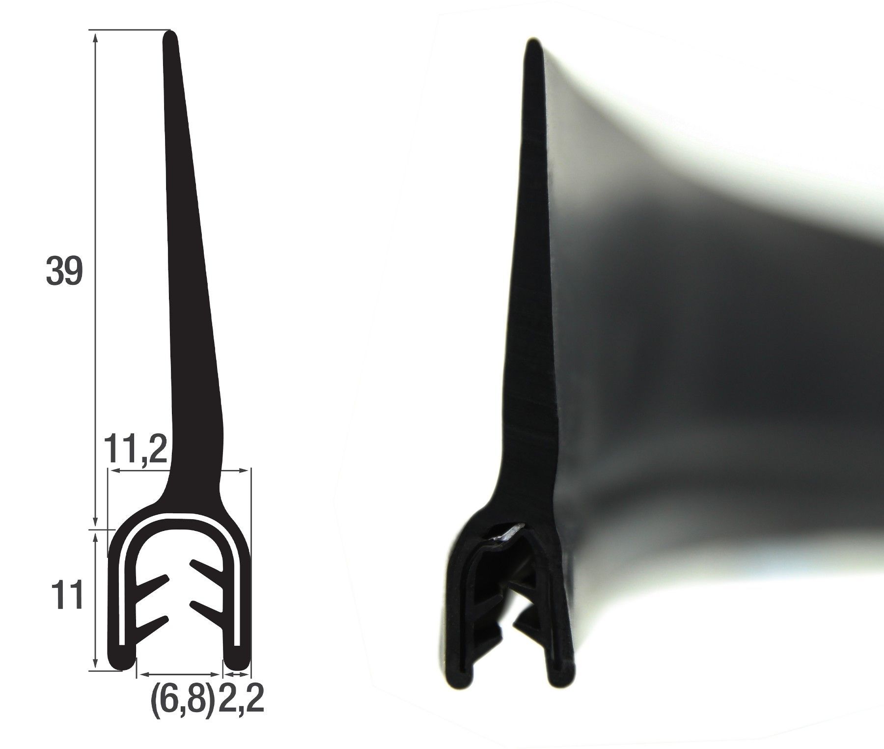 SMI Dichtungsprofil Kantenschutz Profil mit Dichtung als Fahne Gummi Schwarz