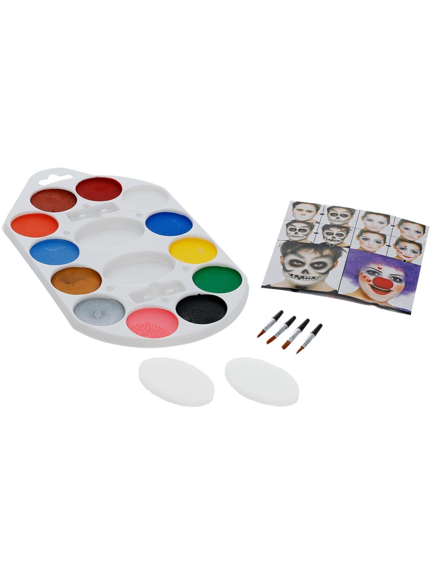 Smiffys Make-Up FX Palette – 12 Farben Aqua Gesichts- und Körperfarbe mit Zubehör