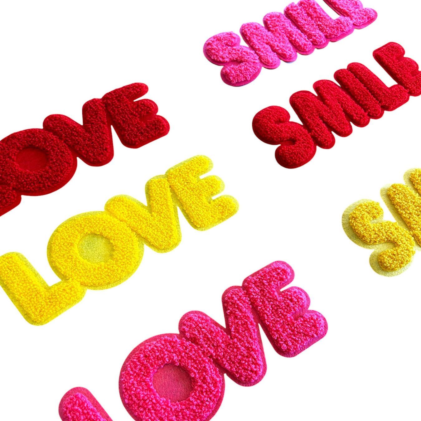 Smiley Roter Aufnäher - Chenille Aufbügler mit 3D-Effekt (20 cm Lang)