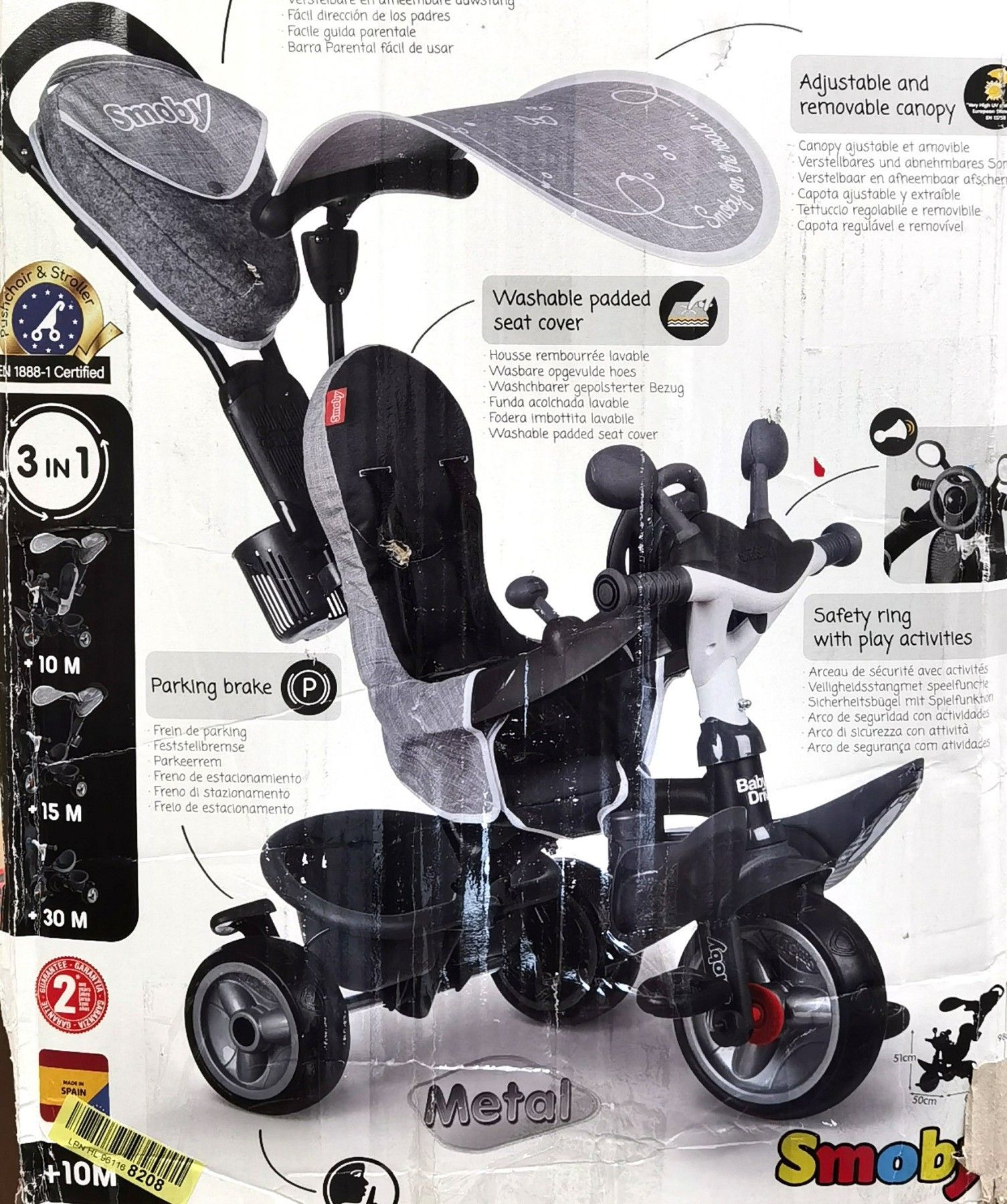 Smoby - Baby Driver Plus Grau 3-in-1 Kinderdreirad, Ersatzteil, unvollständig