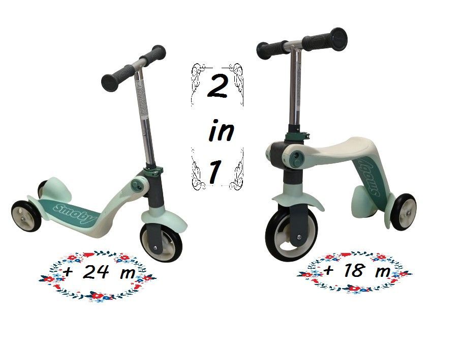 Laufrad und Scooter in einem! Das ist der mitwachsende Little Smoby Switch. Gerade bis zu einem Alter von 3 Jahren nutzen Kinder gerne Laufrad UND Roller - hier ist der Little Smoby Switch die ideale Lösung! Mit wenigen Handgriffen und ganz ohne Werkzeuge wird aus dem wendigen Laufrad ein sportlicher Dreirad-Roller.