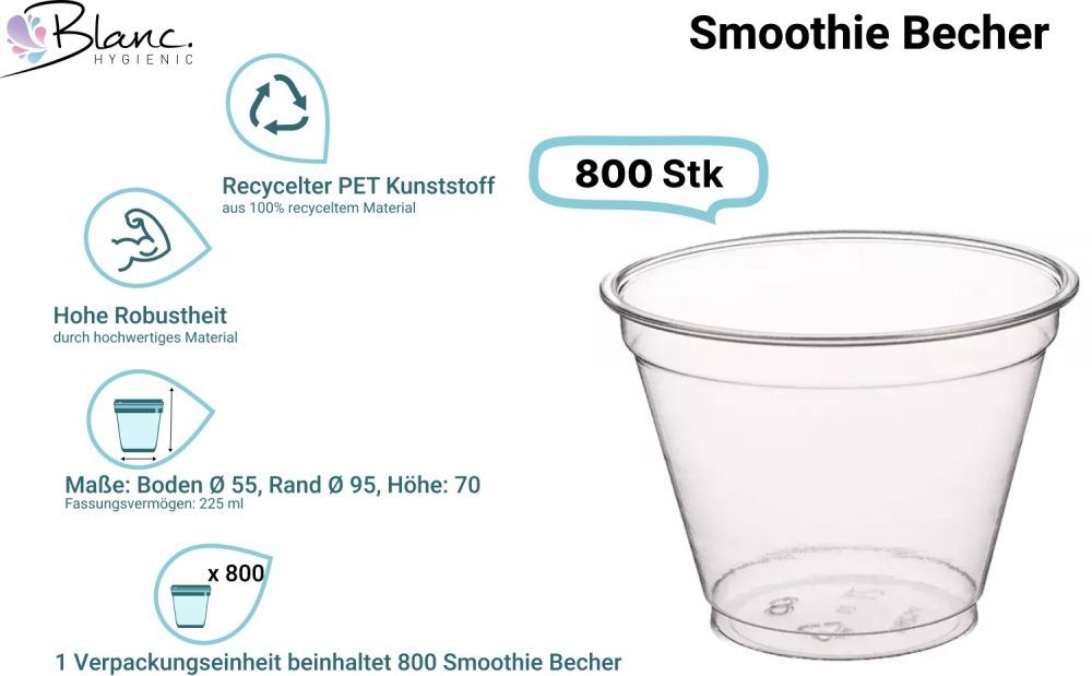 Smoothie Cups, klare Becher 225ml - 800 Stück, transparentes recyceltes PET