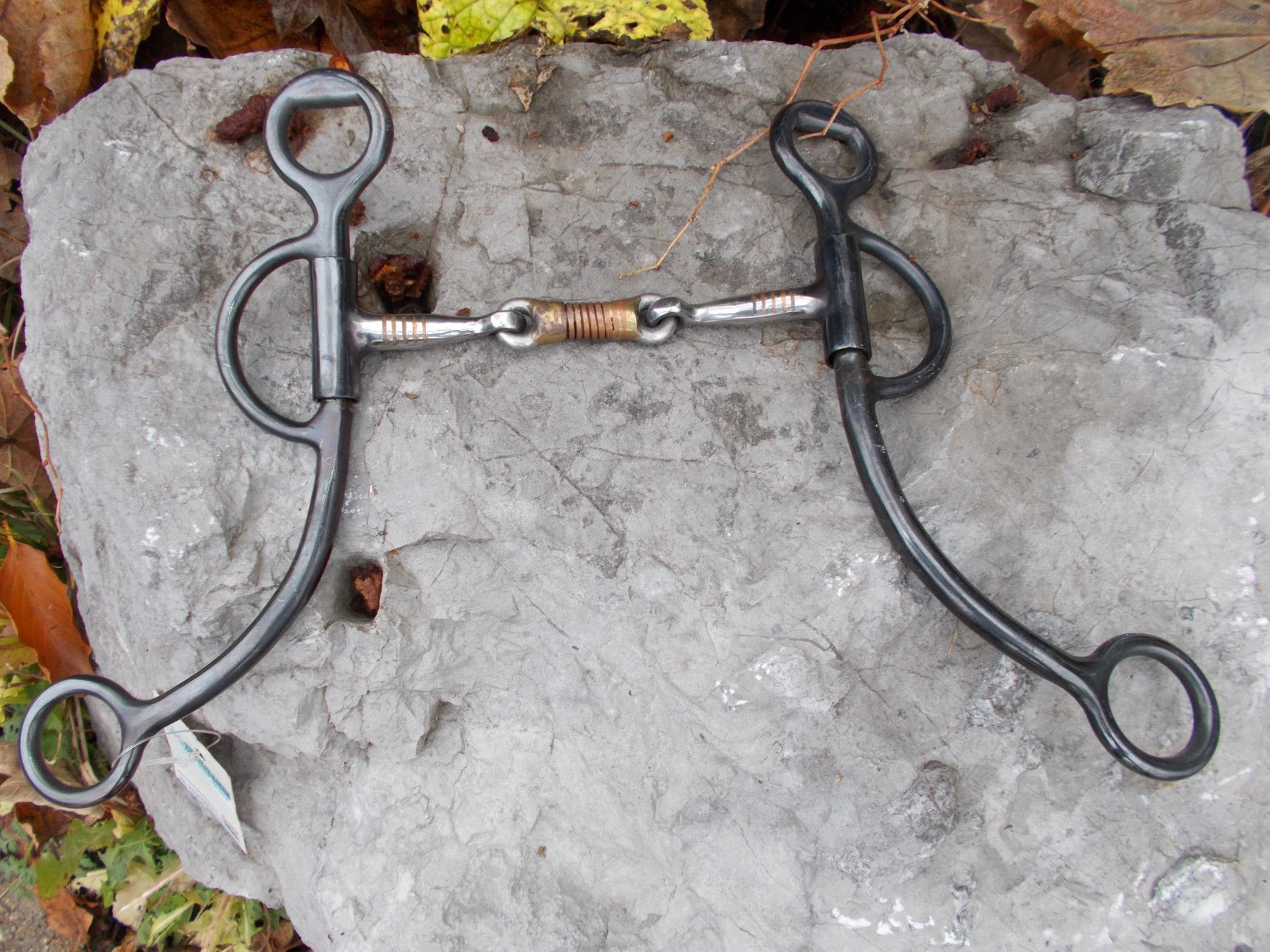 Pro Master Snaffle with Shanks, doppelt gebrochen mit Kupfereinlagen 12,7 Mundstück doppelt gebrochen “sweet iron” und Kupfereinlagen Black Steel Shanks Unterzüge ca 10 cm Bitte beachten: Leichte Rostspuren durch Lufteinwirkung - Dies ist kein Mangel sh. nachstehend Bitte beachten Sie : das Mundstüc
