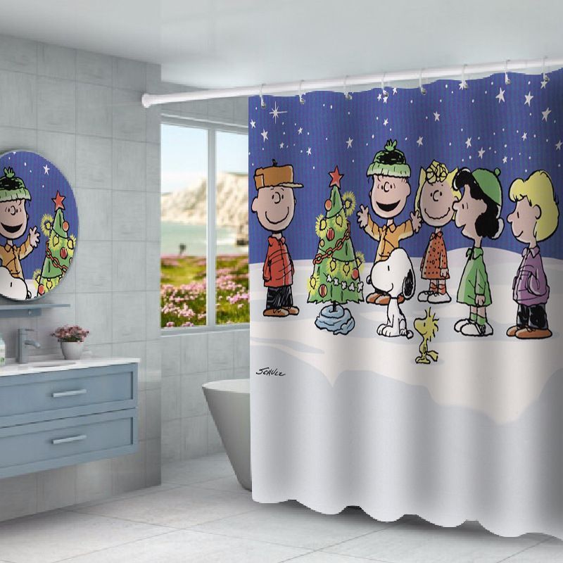 Snoopy Duschvorhänge Charlie Brown Badezimmer Vorhang Shower Curtain mit 12 Ringen