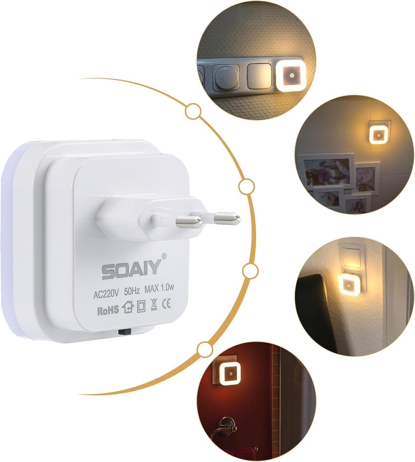 SOAIY 2er-Set LED Nachtlicht mit Bewegungsmelder energiesparend Steckdosenlicht