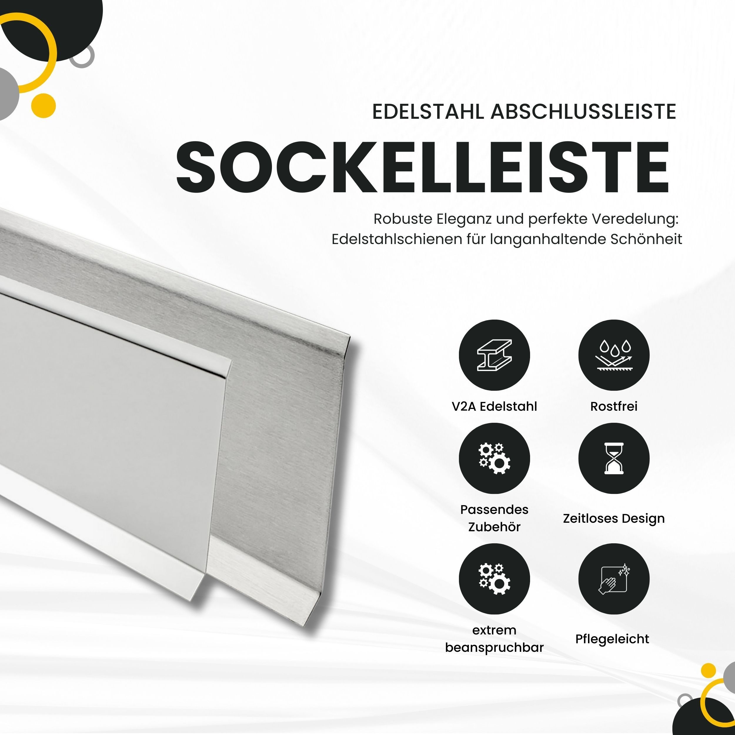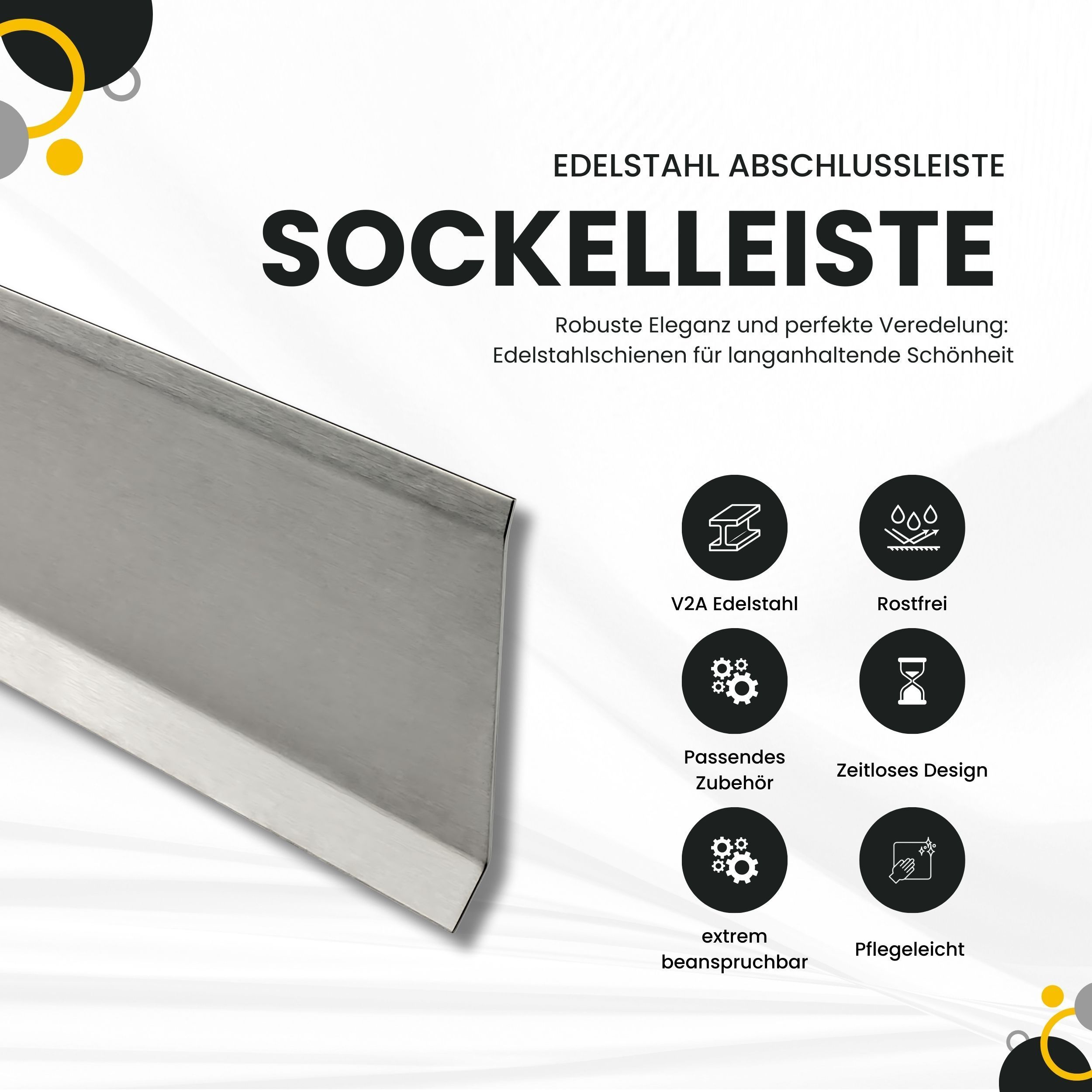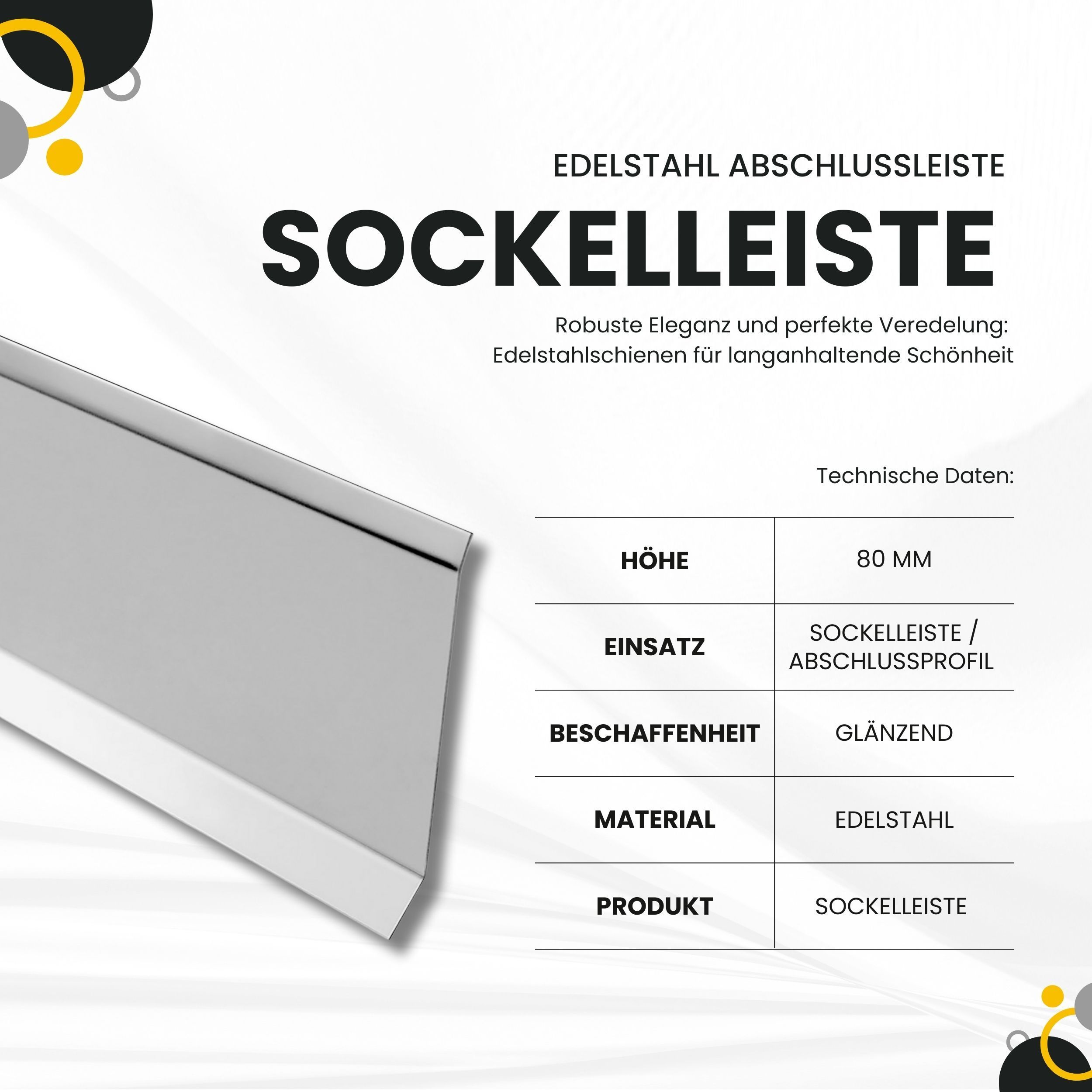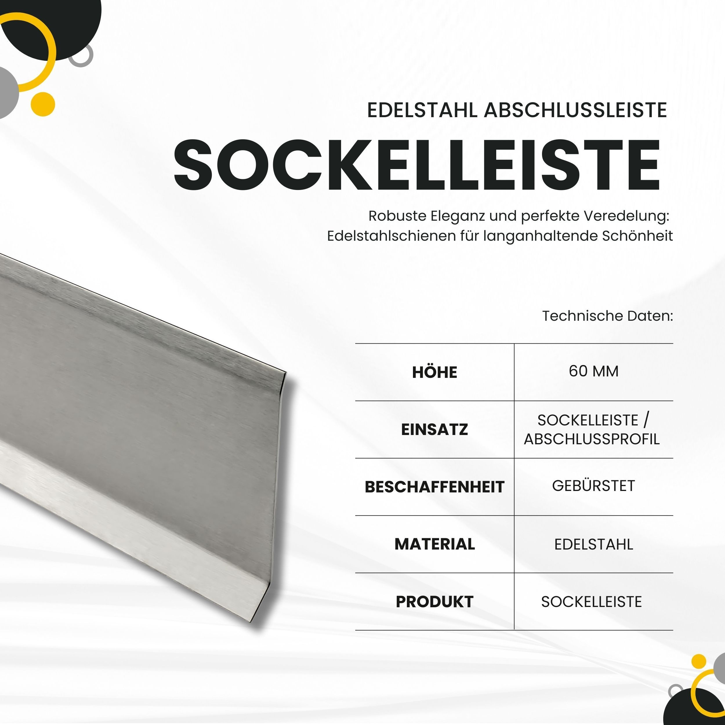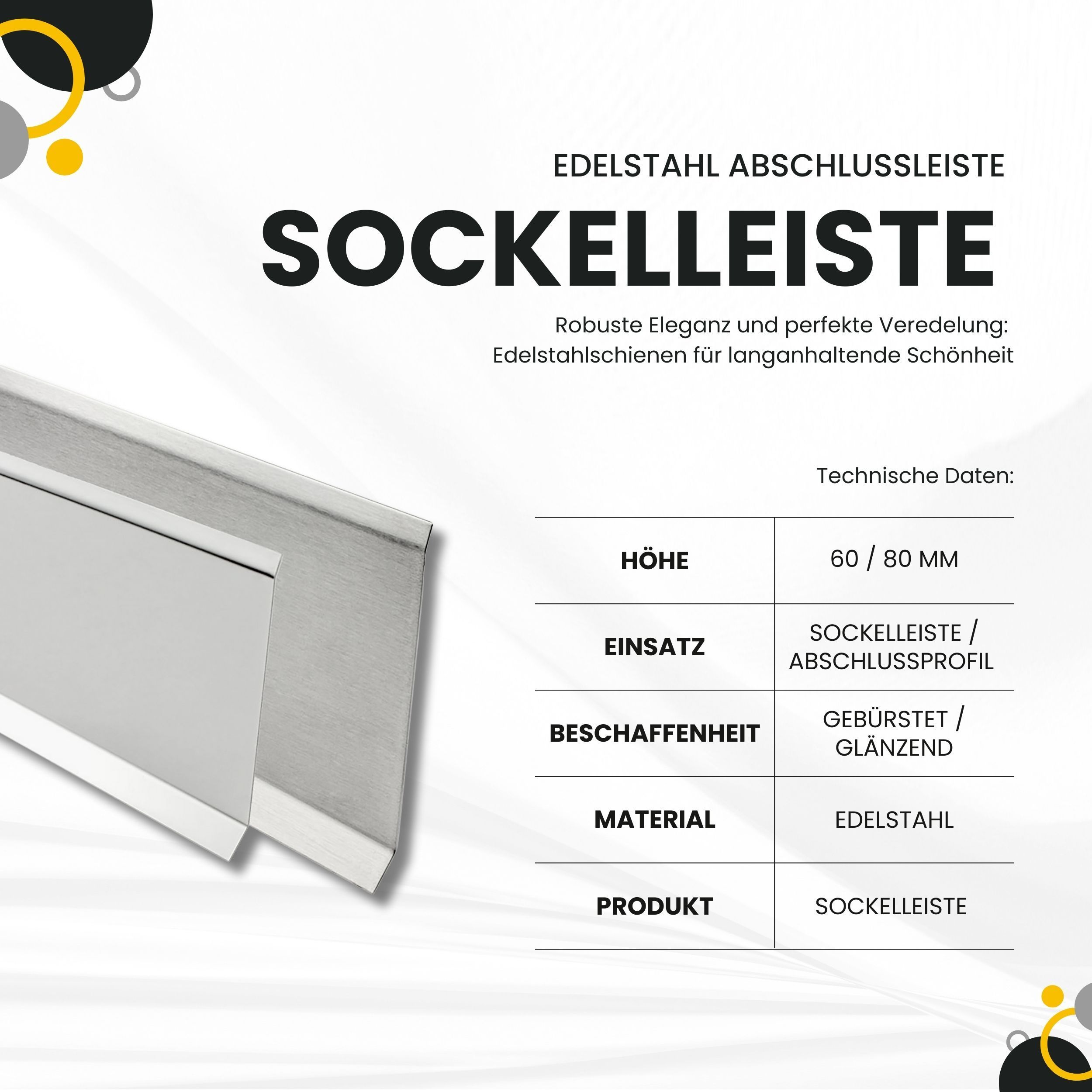 Sockelleiste Edelstahl Fußbodenleisten V2A gebürstet glänzend L250cm H60mm-80mm