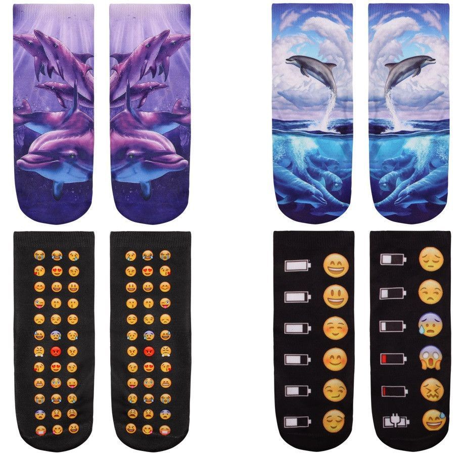 Socken Delfin Emoticon Emoji Strümpfe Socke Sneaker Motiv Motive Eyecatcher neu