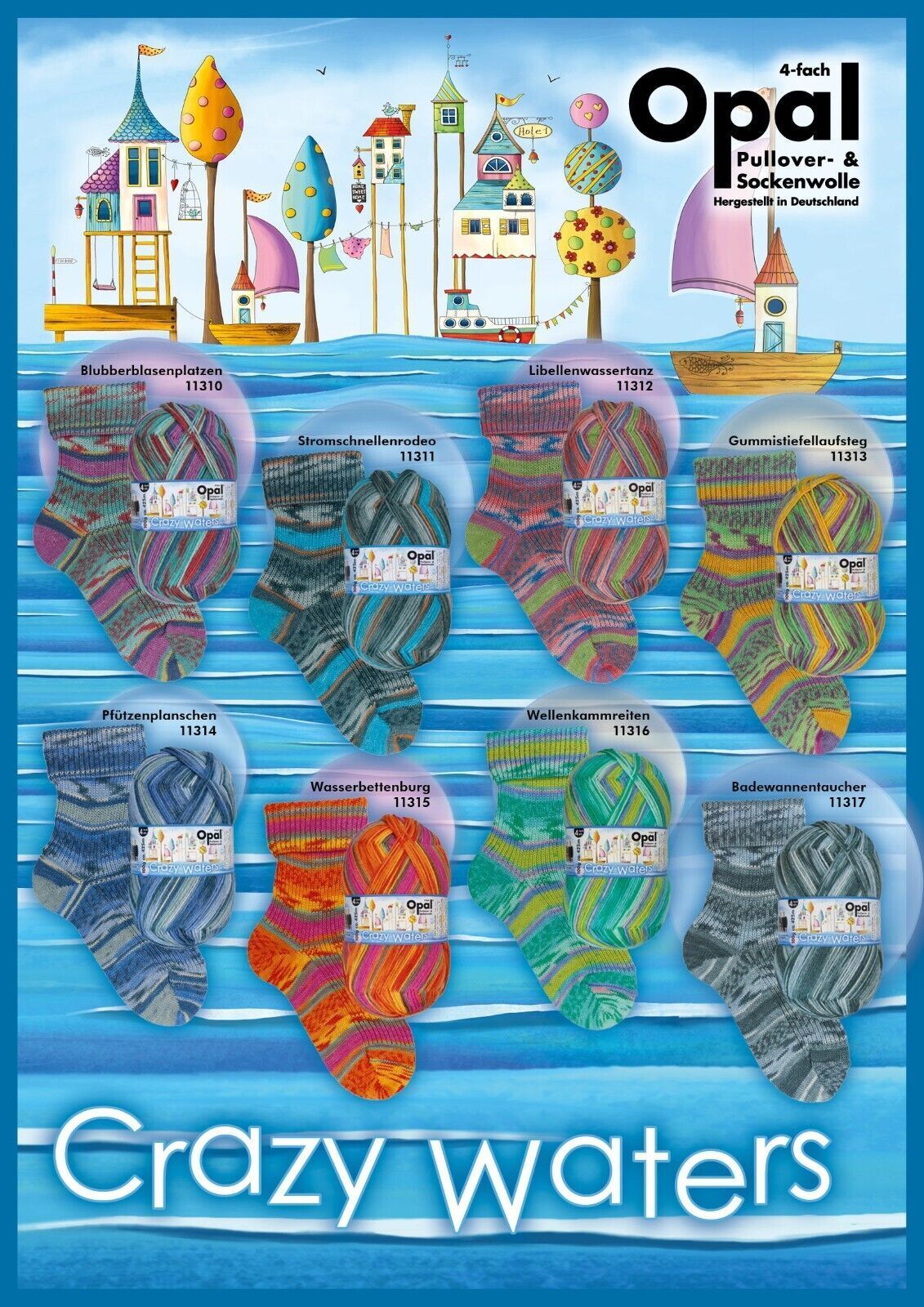 Sockenwolle 4-fach Opal Crazy Waters Farbe 11316 Wellenkammreiten