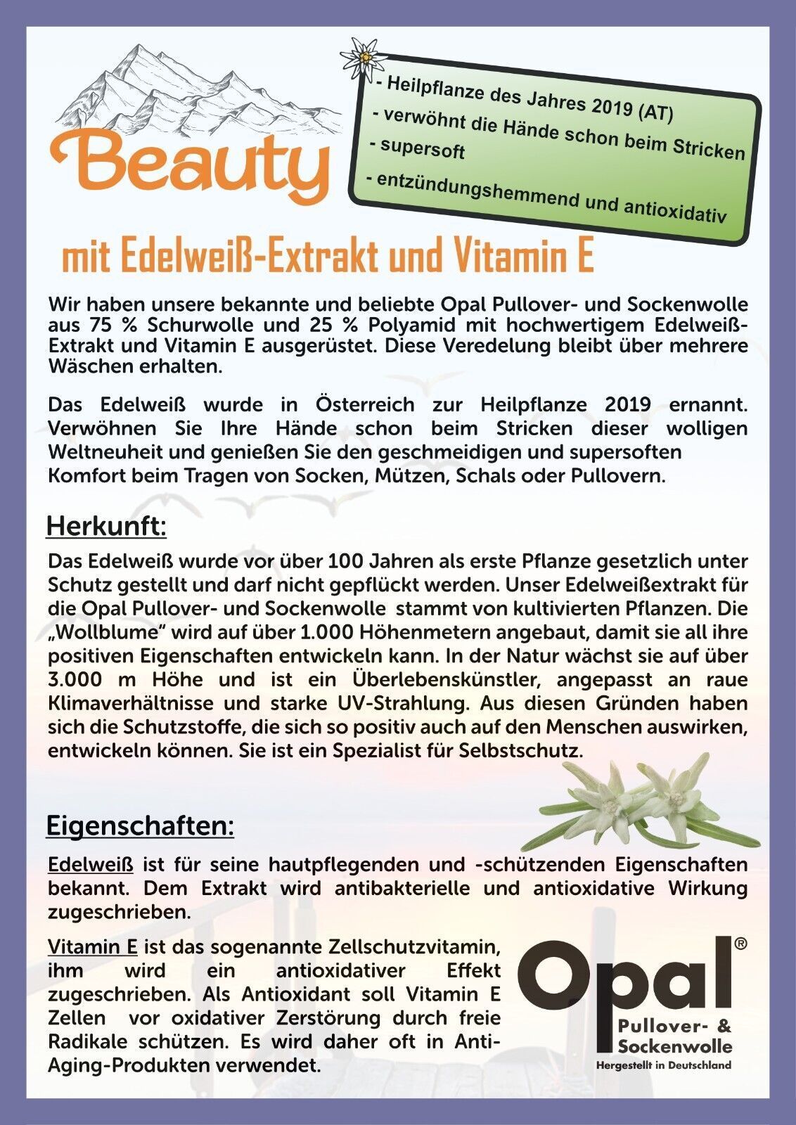 Sockenwolle Opal Beauty - Balance Edelweiß-Extrakt 11400 ruhiges Verweilen