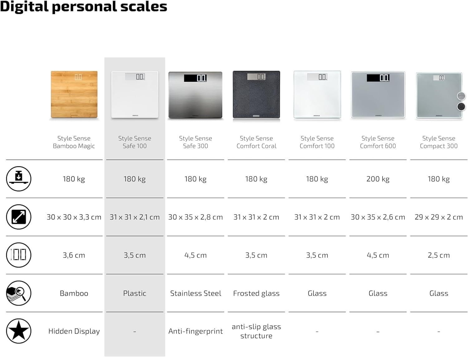 Soehnle Soehnle Style Sense Safe 100 Personen Digitalwaage LCD-Anzeige bis 180 kg Weiß