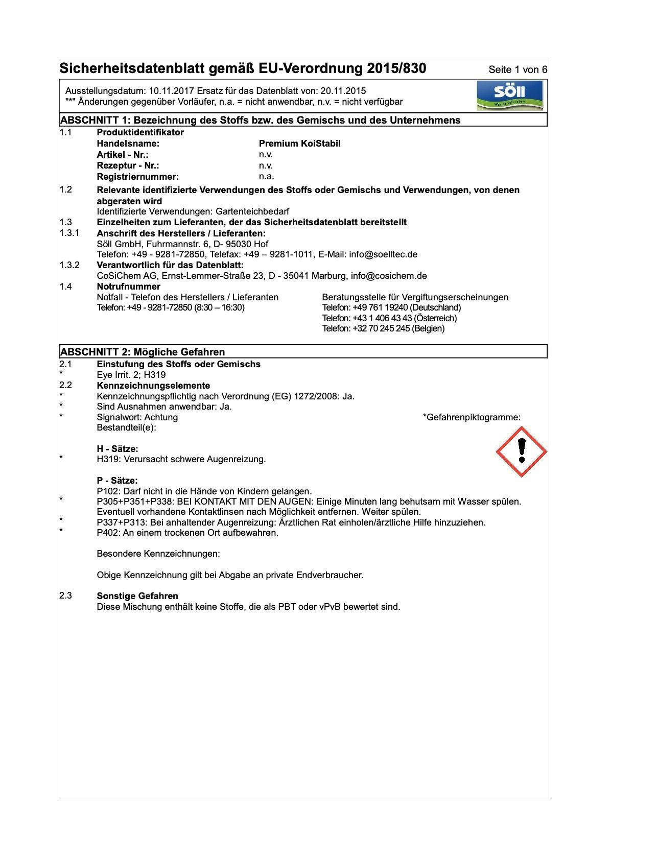 Söll Teichpflege 1 Kg Premium KoiStabil Wasseroptimierer für 10 Qbm