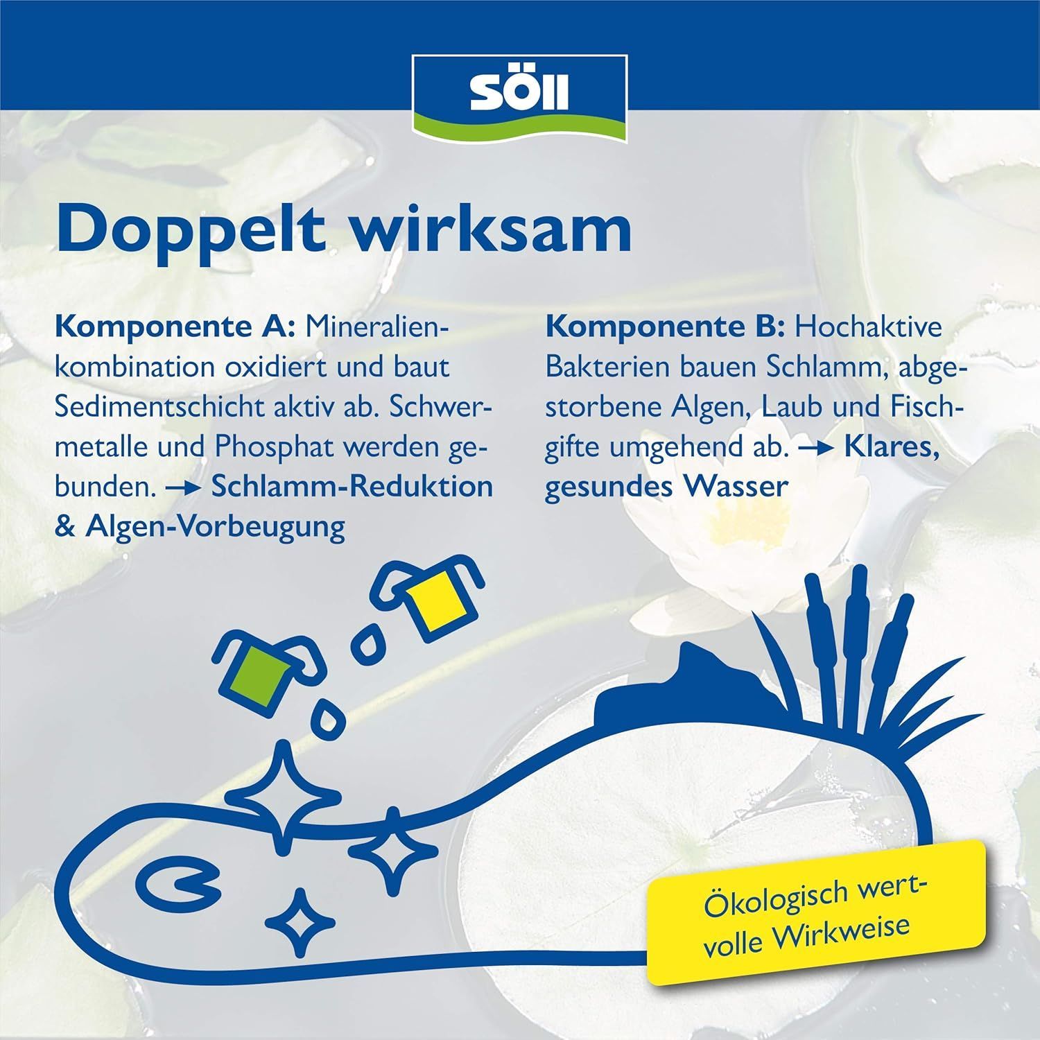 Teile des Teichschlamms wurden abgebaut und das Wasser ist sehr klar. Durch die Teichgrösse bleiben besonders in der Mitte die Mulmreste am Boden liegen. Hier muss man den Teichschlammsauger einsetzen. Damit ist die Kombination des Produktes mit einem Schlammsauger meiner Meinumg nach sinnvoll.