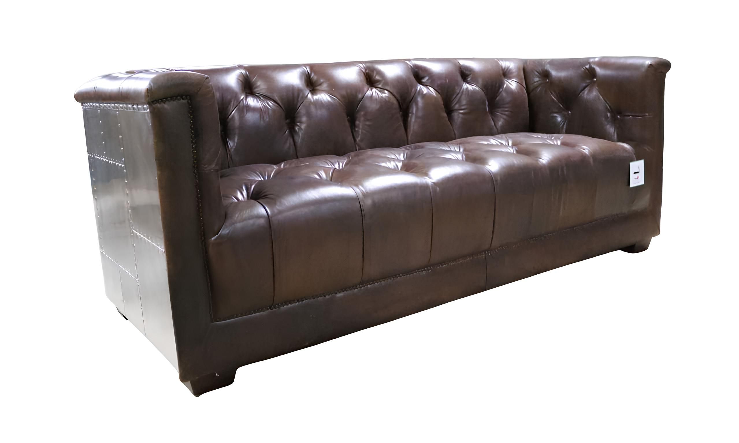 Sofa 3 Sitzer Chesterfield 3-Sitzer Vintage Braunes Shabby Ledersofa
