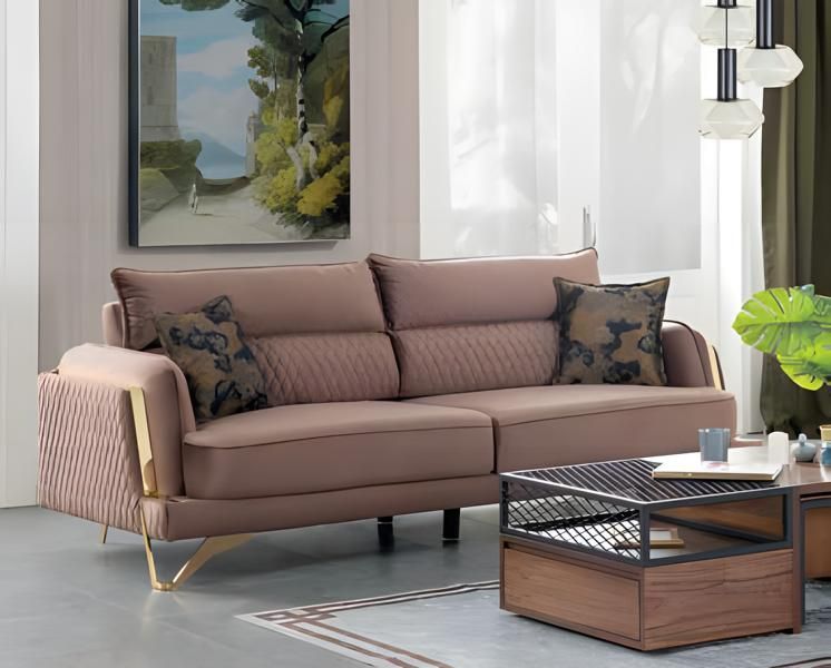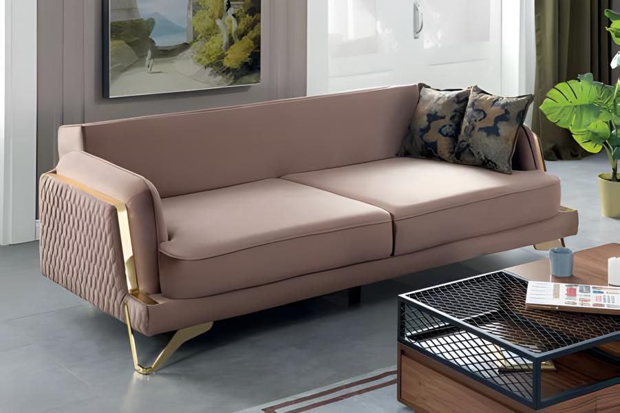 Sofa 3-Sitzer Creme Stoffbezug Goldfüße Elegant Modern Design Wohnzimmerstil