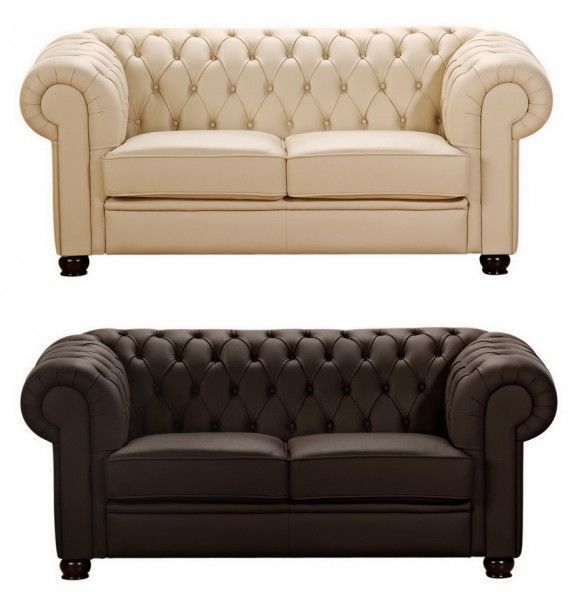 Max Winzer Sofa Couch 2 Sitzer braun beige in Leder oder Kunstleder Knopfheftung klassisch