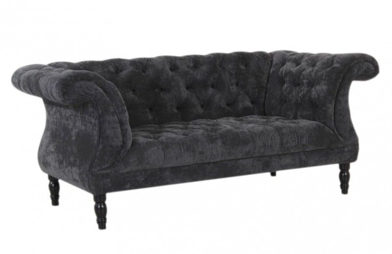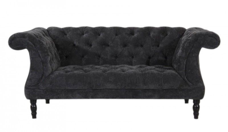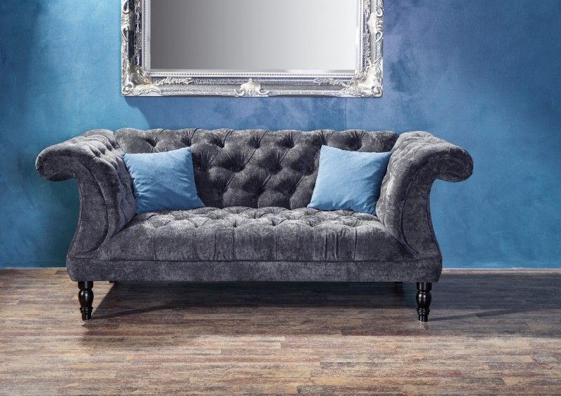Sofa Couch 2-sitzig Samtvelours samtig grau Chesterfield barock edel