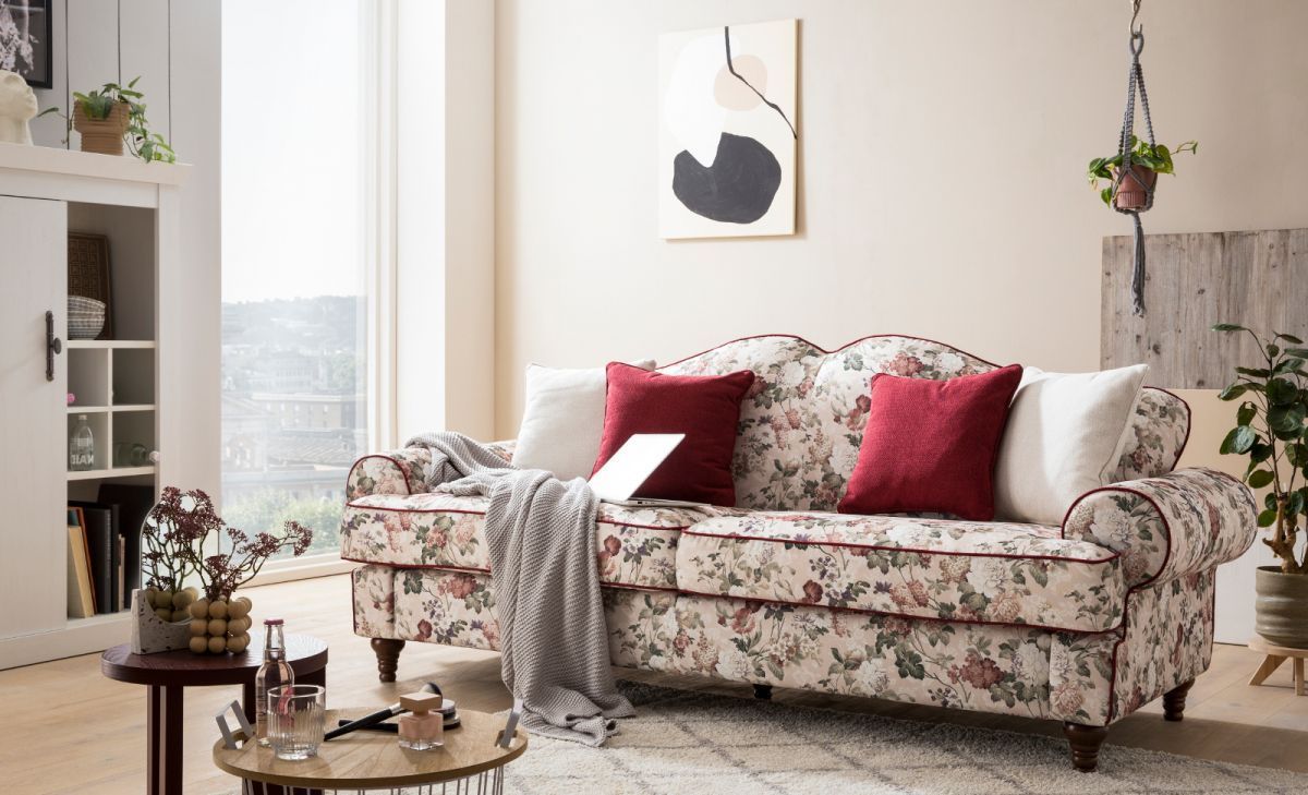 Sofa Couch 3,5-Sitzer in Blumen Design Landhaus Wohnzimmer Elita 228 cm