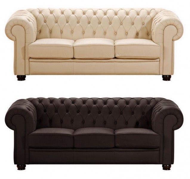 Max Winzer Sofa Couch 3-sitzig braun beige in Leder oder Kunstleder Knopfheftung klassisch