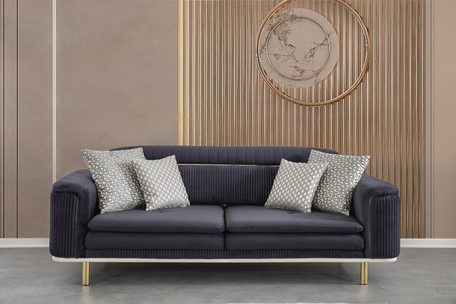Graue Dreisitzer Samt Couch Wohnzimmer Couchen Sofa Elegante Sitzmöbel Sofa Neu