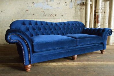 Blauer Dreisitzer Samt Couch Wohnzimmer Couchen Sofa Sitzmöbel Sofa Chesterfield
