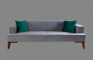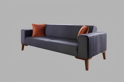Sofa 3 Sitzer Designer Sofa Couch Polster Sofa Couchen Holz Textil Grau