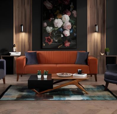 Orange Dreisitzer Couch Couchen Sofa Elegante Sitzmöbel Sofa Wohnzimmer Samt